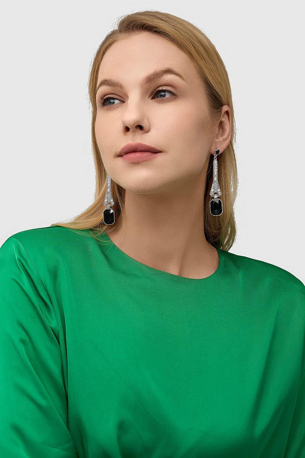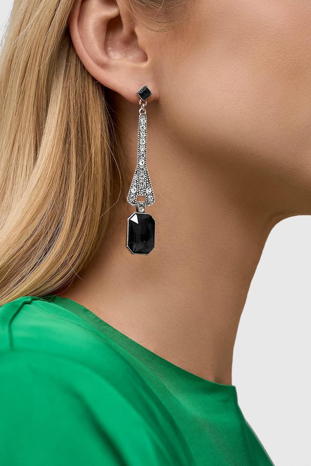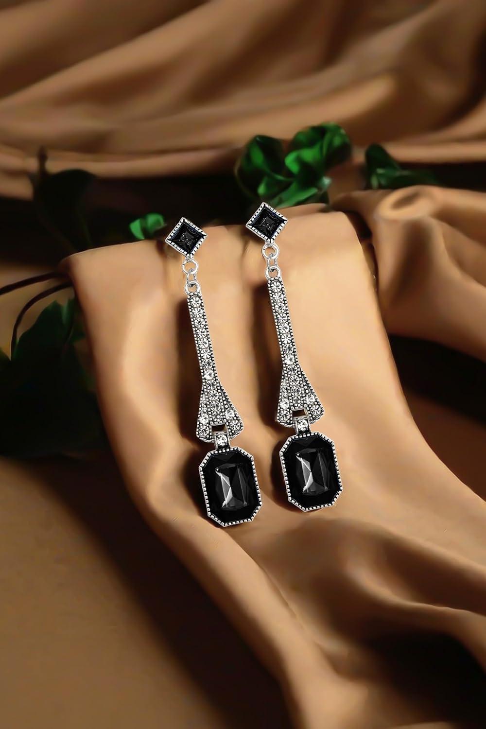 1920s Flapper Earrings 20s Great Gatsby Earrings Vintage 20s Flapper Accessories Gatsby Costume Accessories(Black)