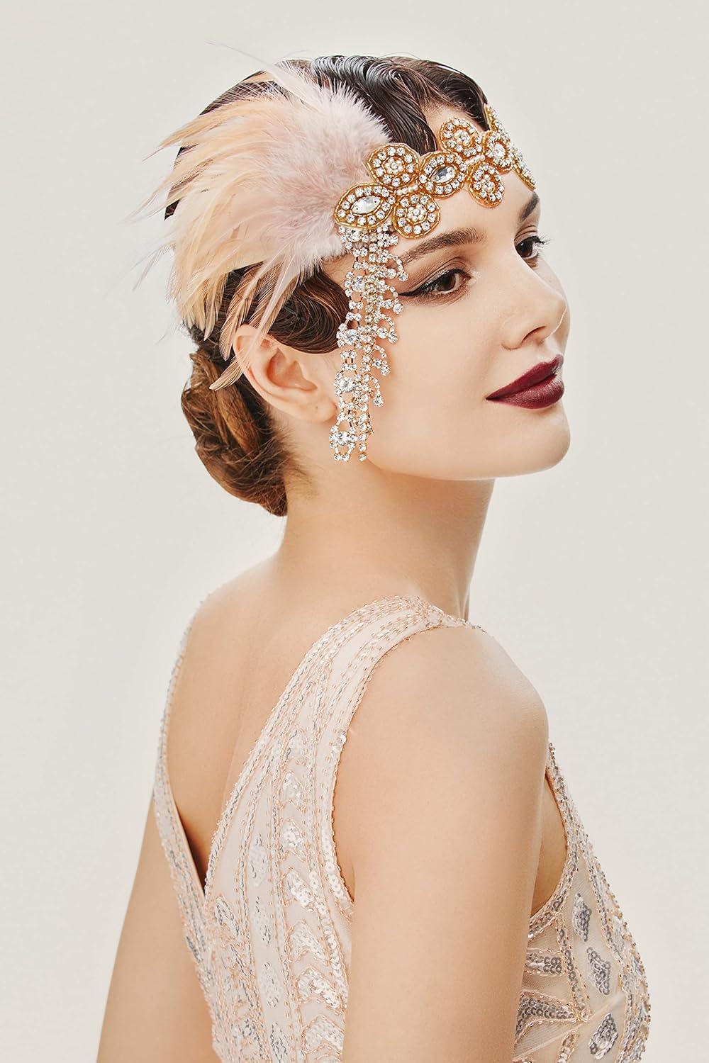 Get up to 50% off on BABAEYOND 1920s Headpiece Flapper Headband – Feather Crystal Headpiece Flapper Accessories(Gold Champagne) styles during our spring sale event.