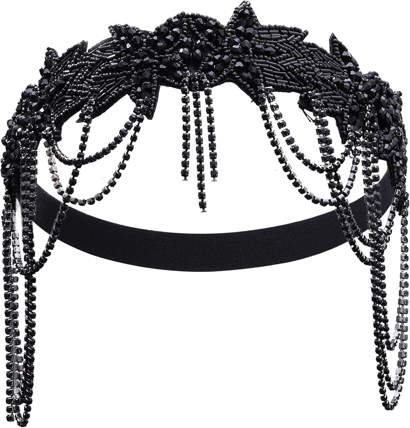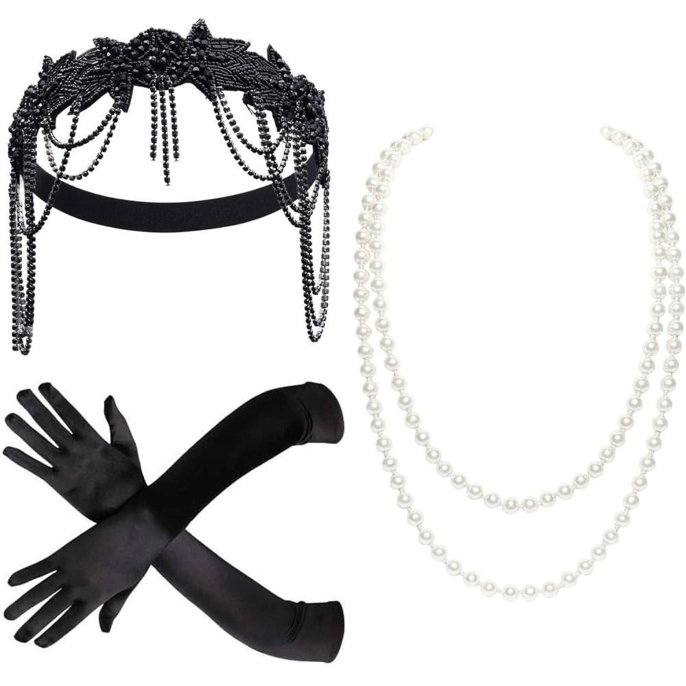 BABEYOND 1920s Accessories for Women – Great Gatsby Accessories Flapper Headband Headpiece Pearl Necklace Gloves for Women(Black)