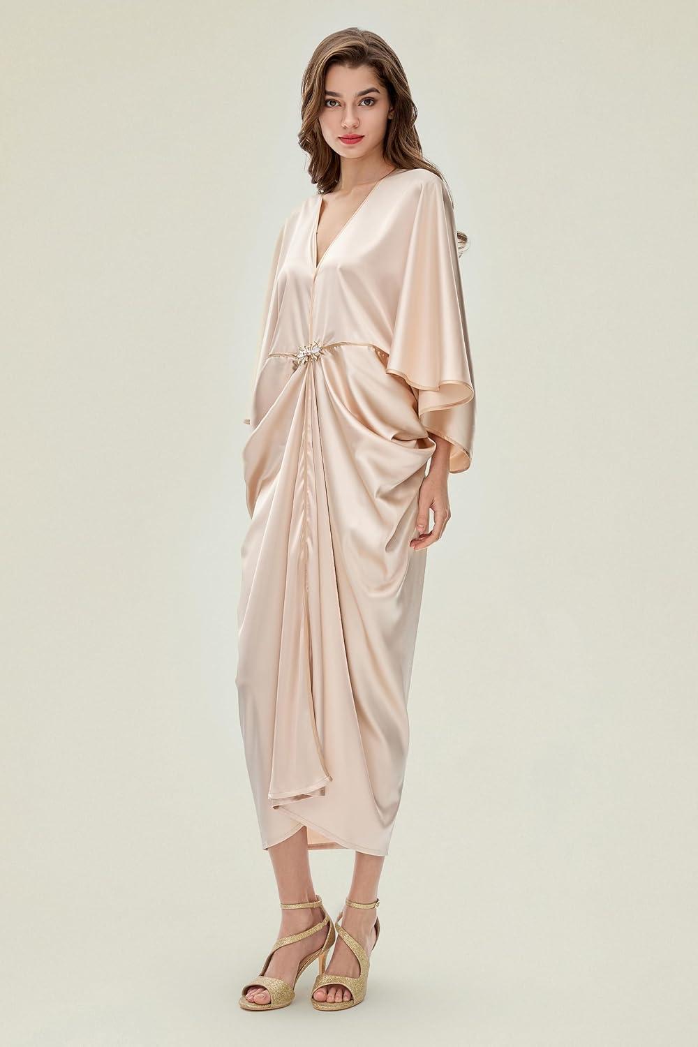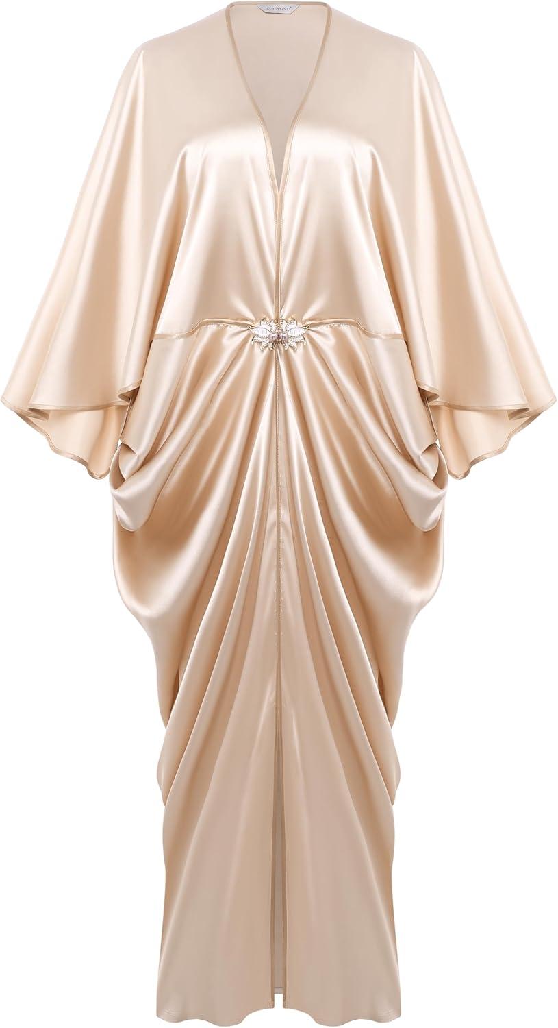 BABEYOND 1920s Dresses for Women – Hollywood Style Dress Great Gatsby Evening Gown with Outfit Batwing Sleeves Art Deco Coat(Champagne)