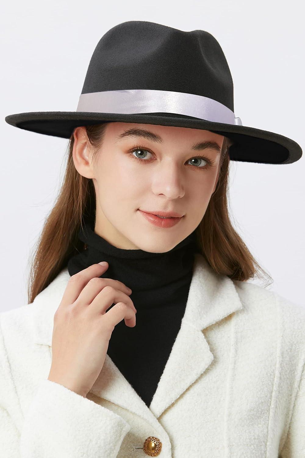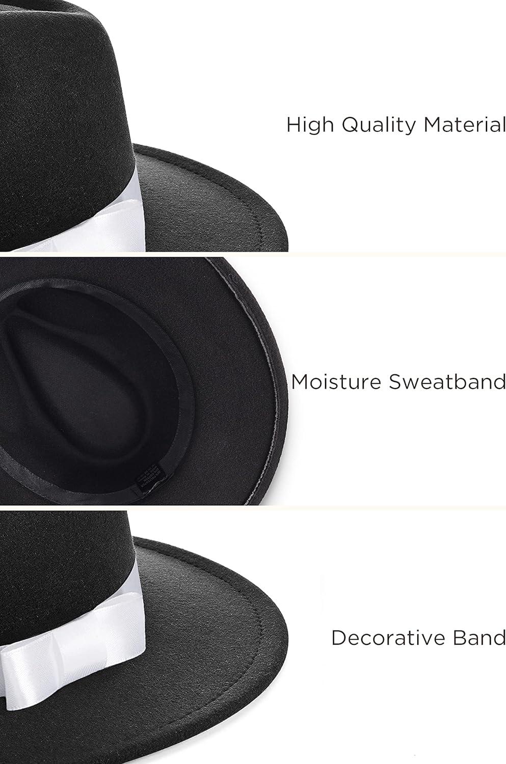 BABEYOND 1920s Fedora Hat for Men Gatsby Wide Brim Fedora Hat Felt Panama Cap with Band for Women Men(Black)
