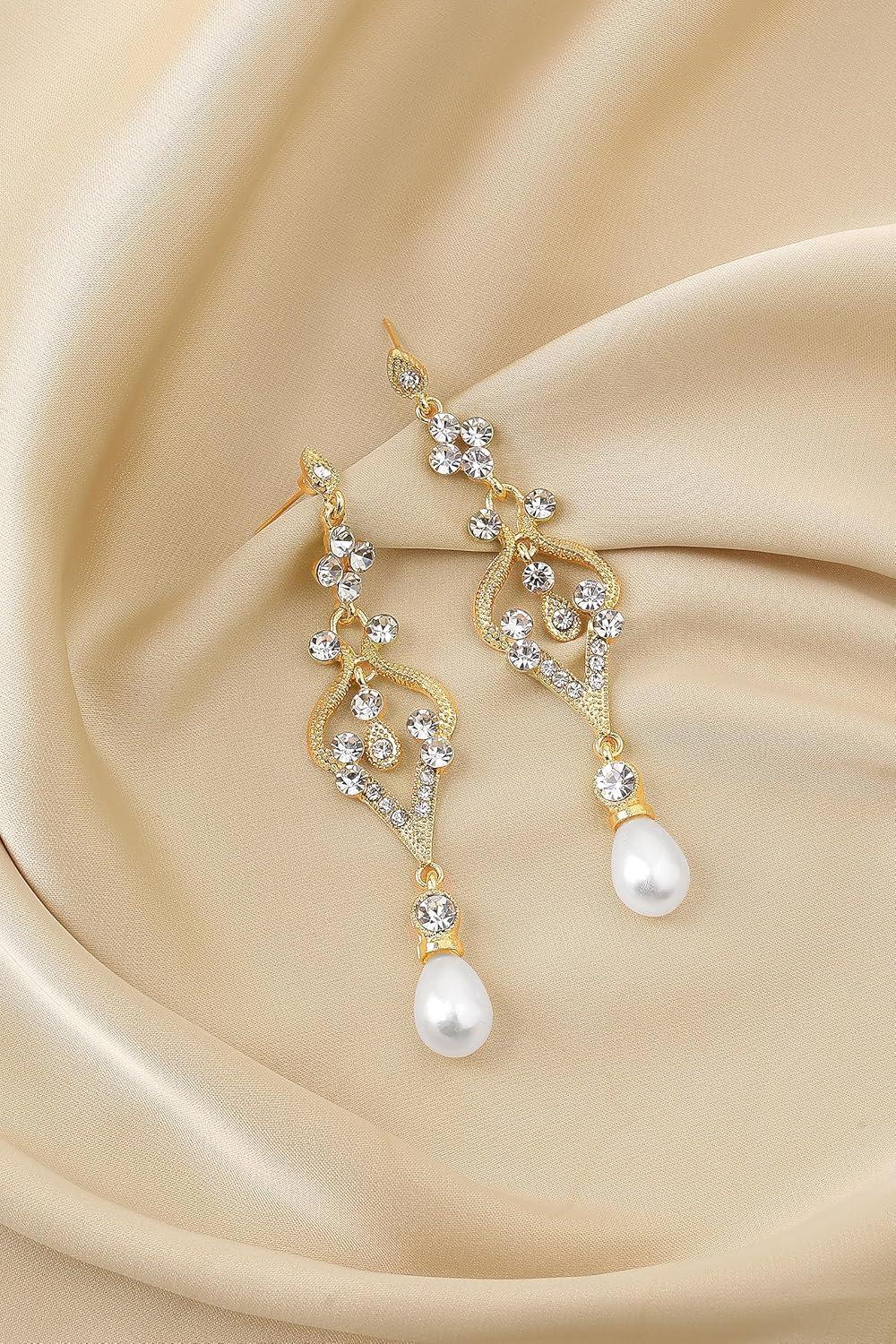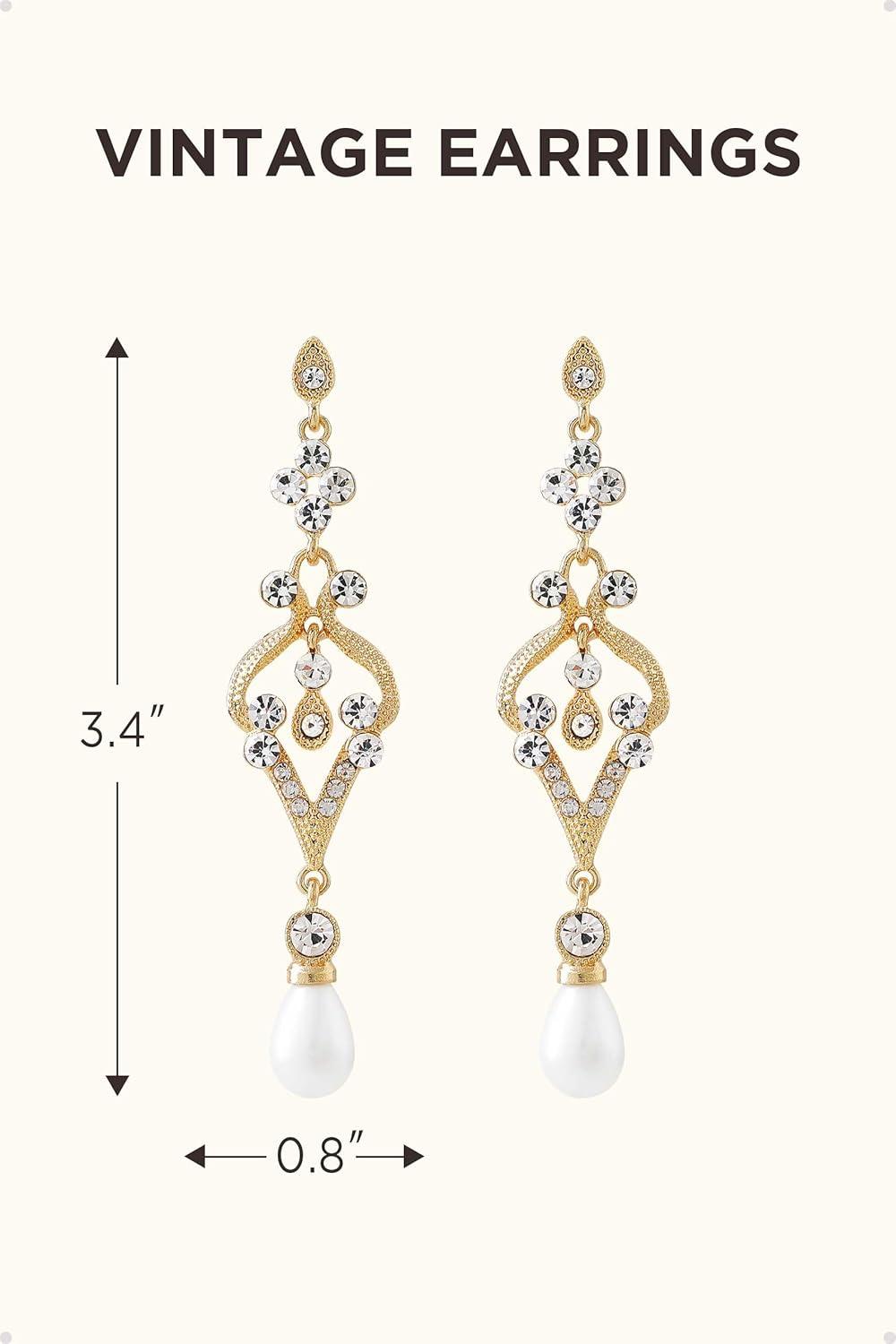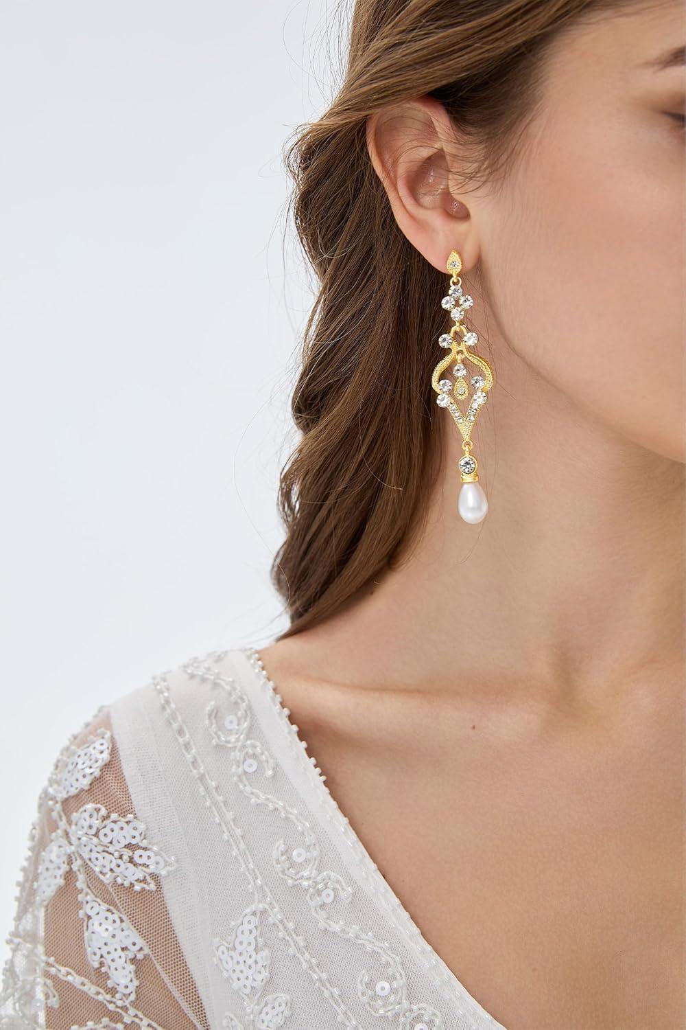 BABEYOND 1920s Flapper Art Deco Gatsby Earrings 20s Flapper Gatsby Accessories Vintage Wedding Dangle Pearl Earrings(Golden)