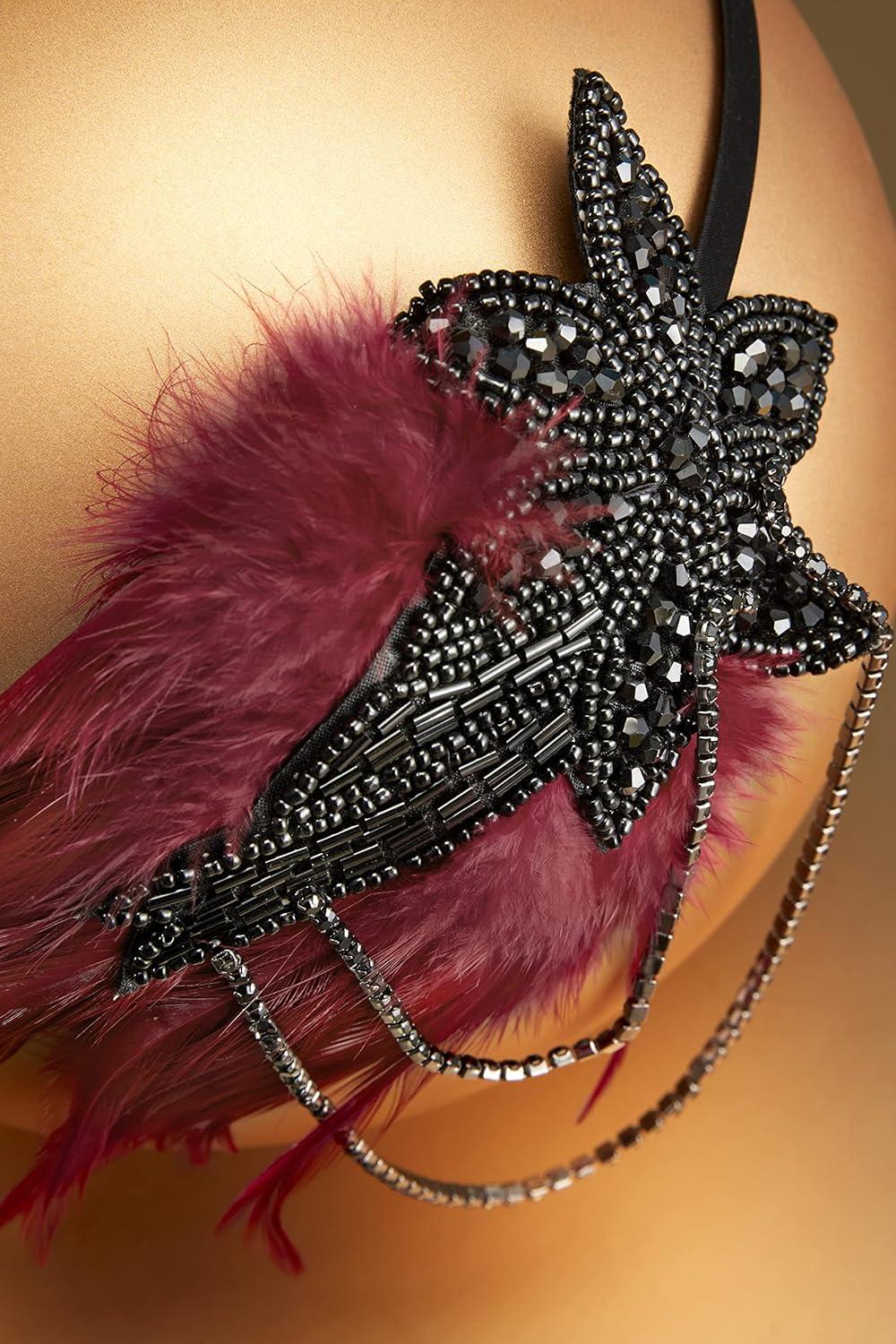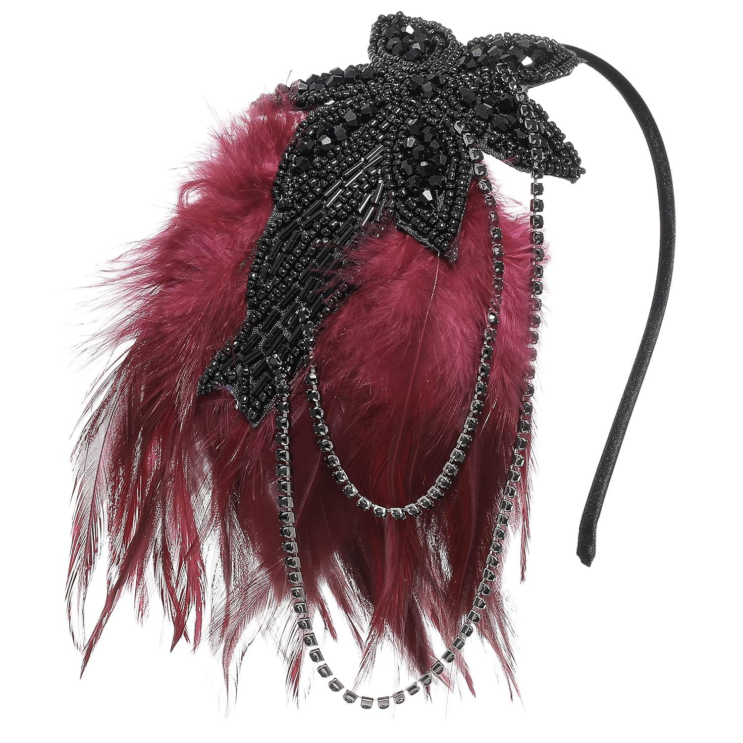 BABEYOND 1920s Flapper Headband Feather Beaded Headpiece Roaring 20s Great Gatsby Hair Accessory for Party (Black)(Black Red)