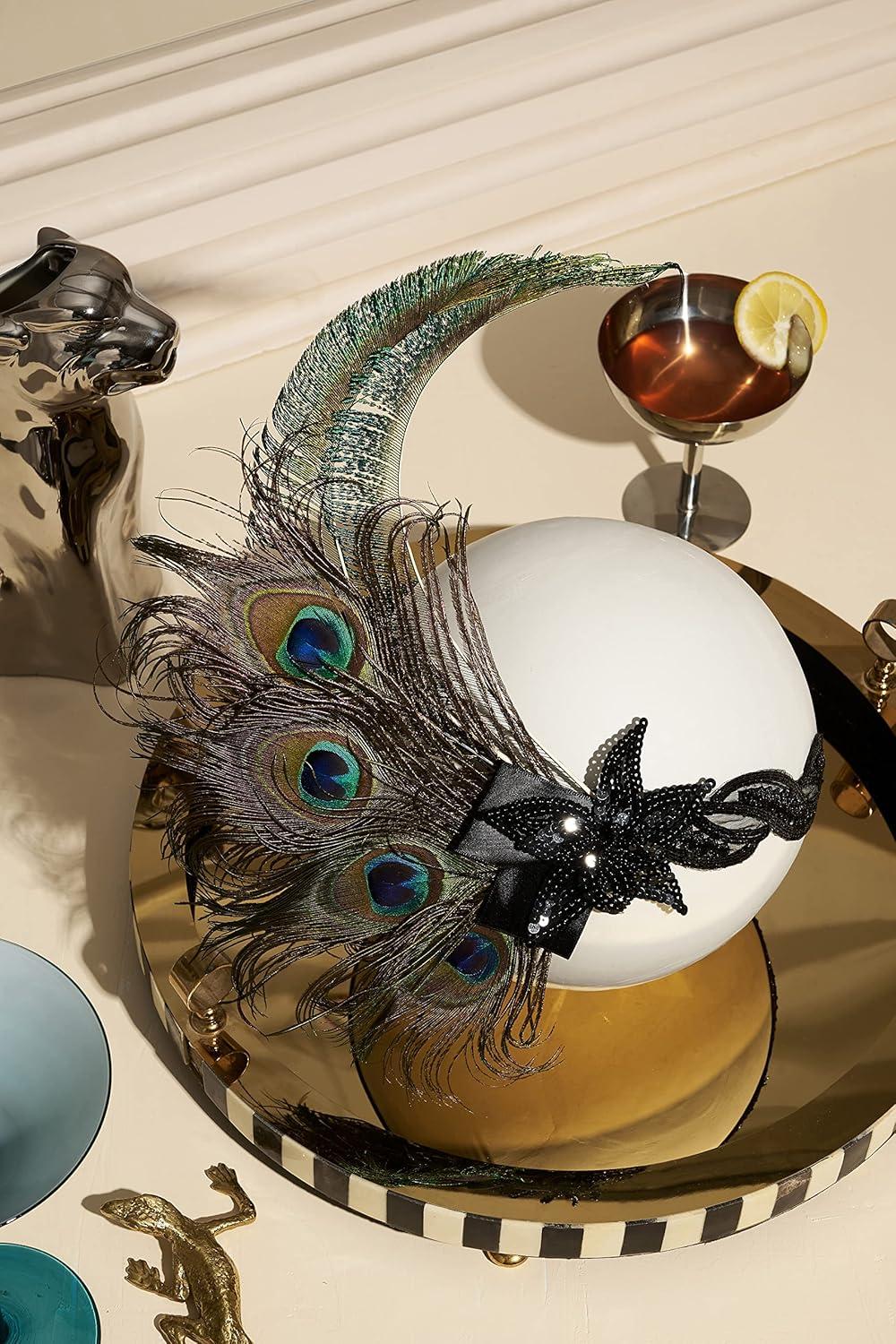 Unique Design: Vibrant peacock feathers contrasting flower-shaped sequin decoration; Satin ribbon embellishments; Irregular crossover designed forehead band.