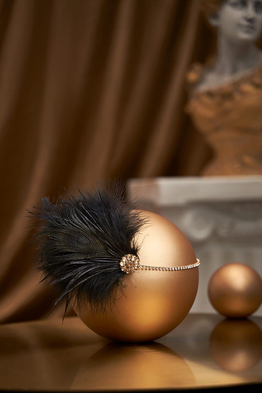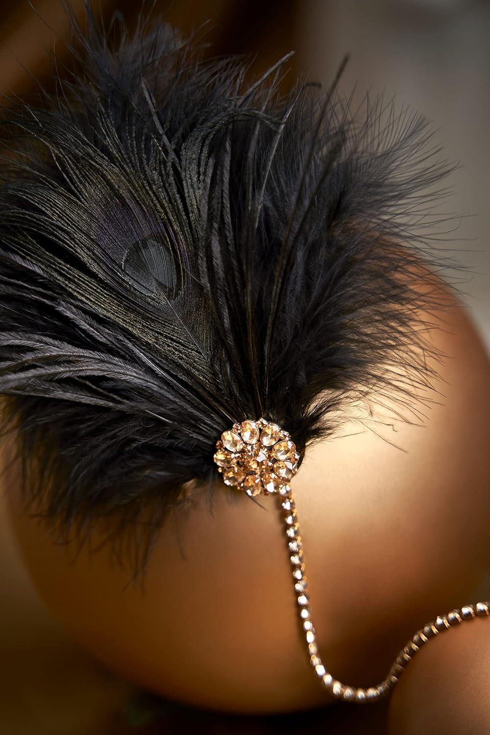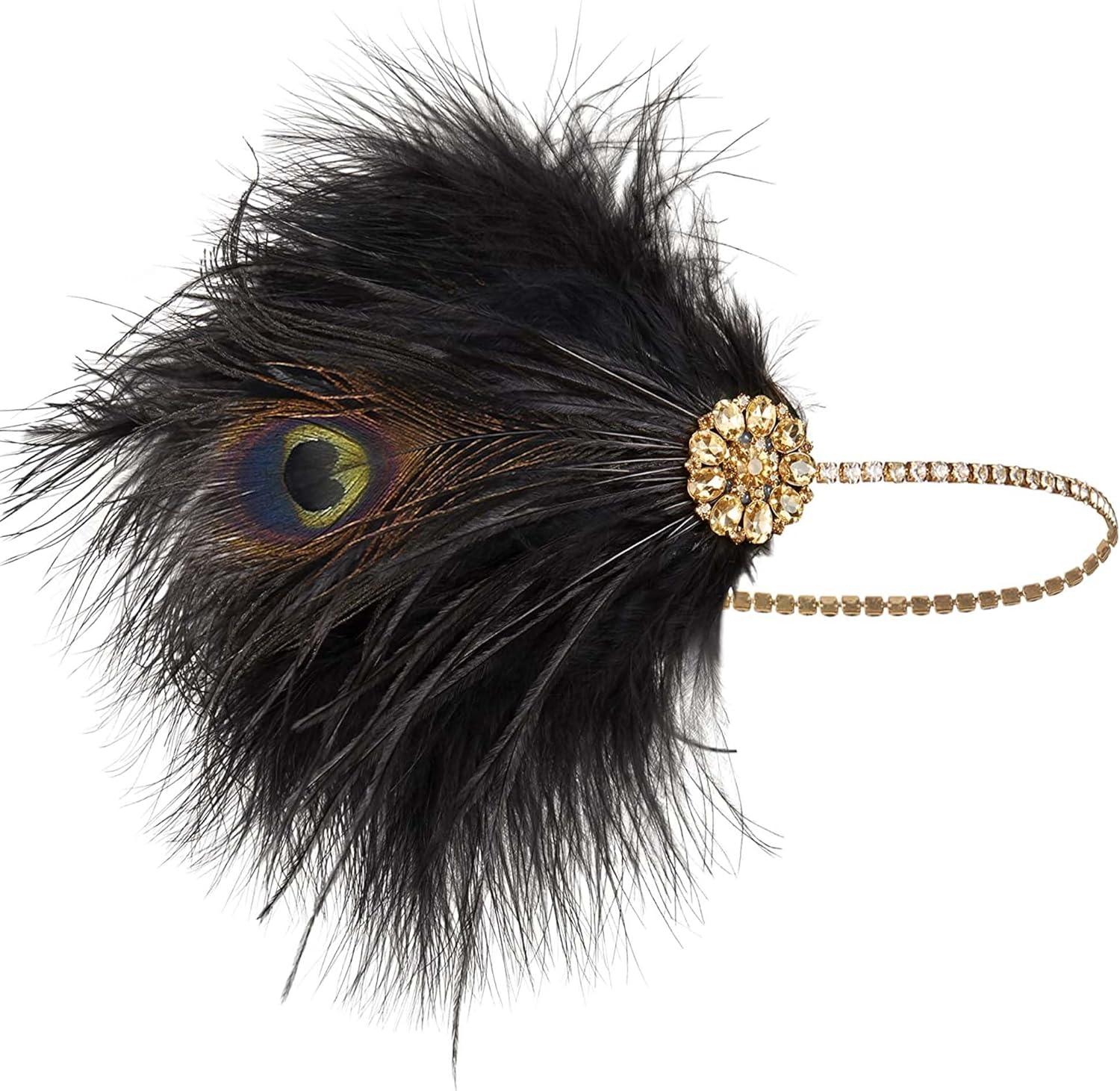 BABEYOND 1920s Flapper Headband Roaring 20s Headpiece Gatsby Ostrich Feather Headpiece with Crystal Women(A-black)