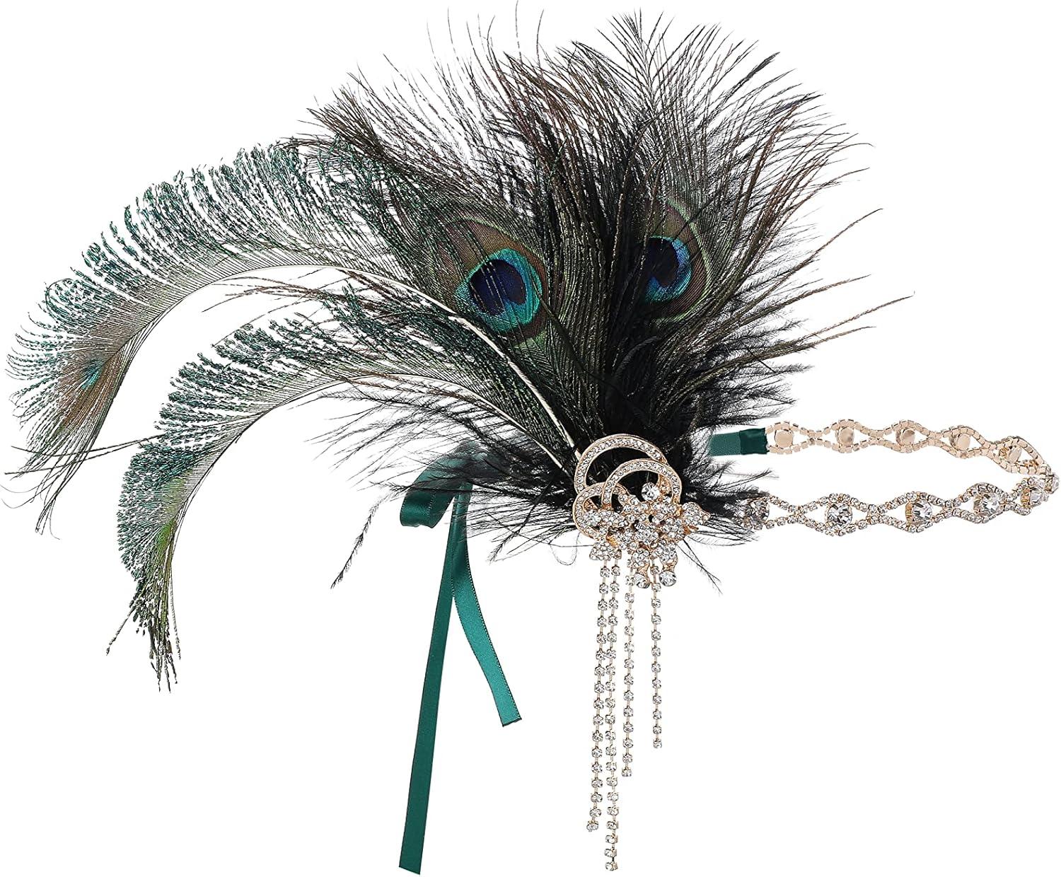 BABEYOND 1920s Flapper Headpiece Headband – Roaring 20s Great Gatsby Feather Headband 1920s Flapper Gatsby Accessories(Green)