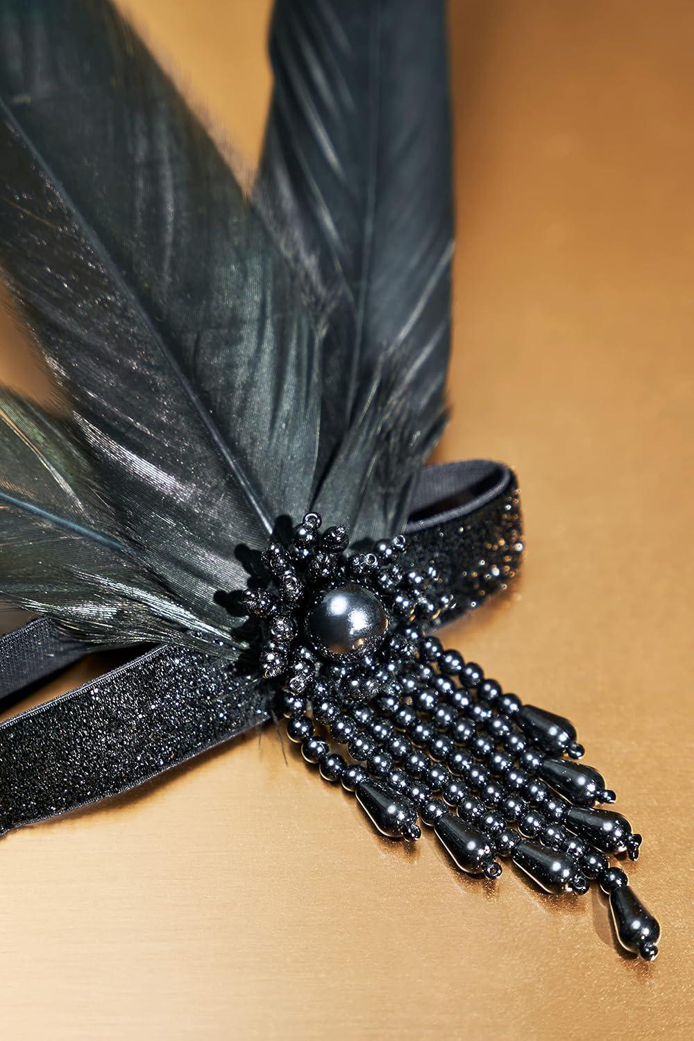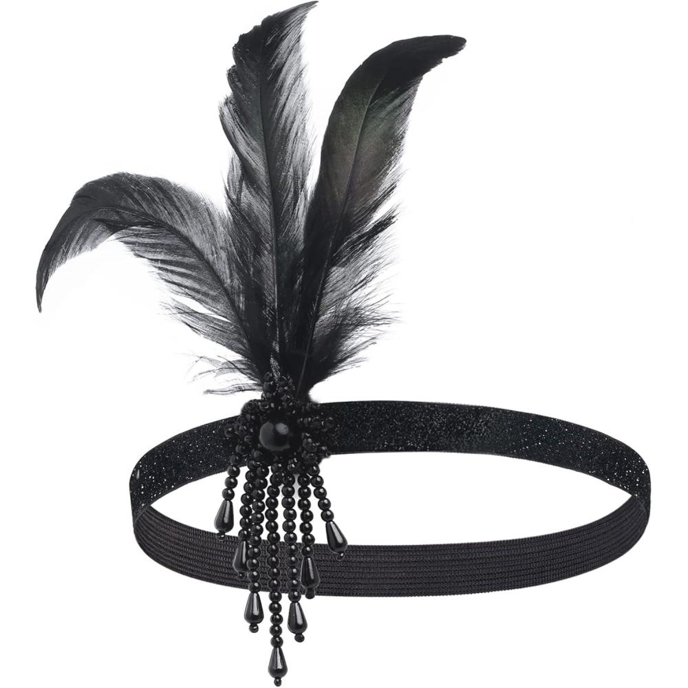 BABEYOND 1920s Flapper Headpiece Roaring 20s Feather Headband Roaring 20s Gatsby Hair Accessories(Black)