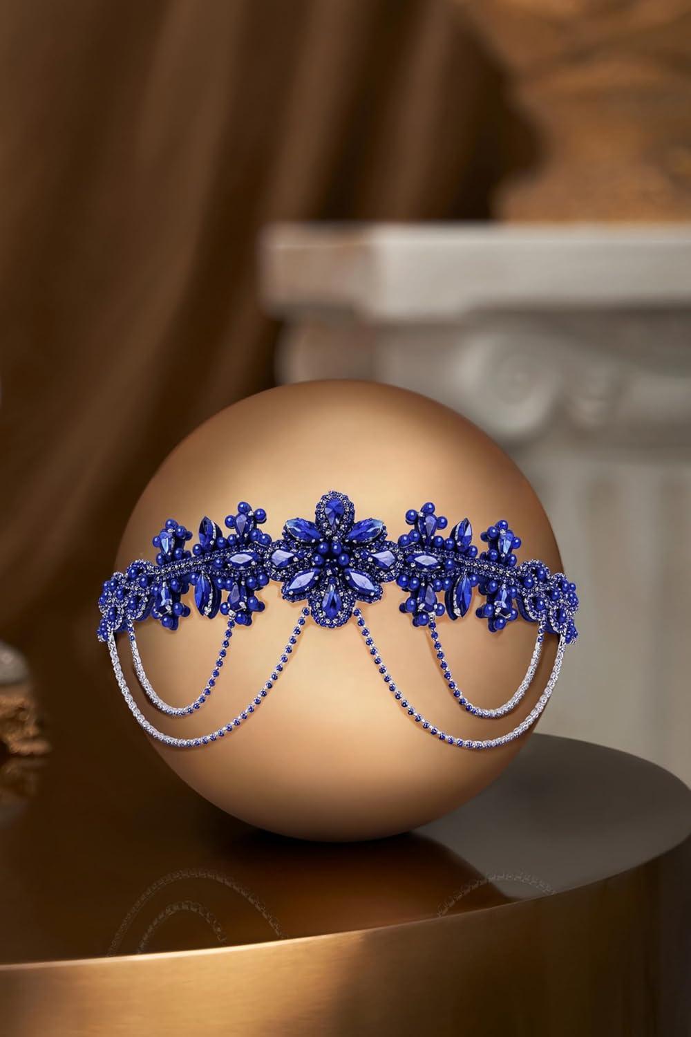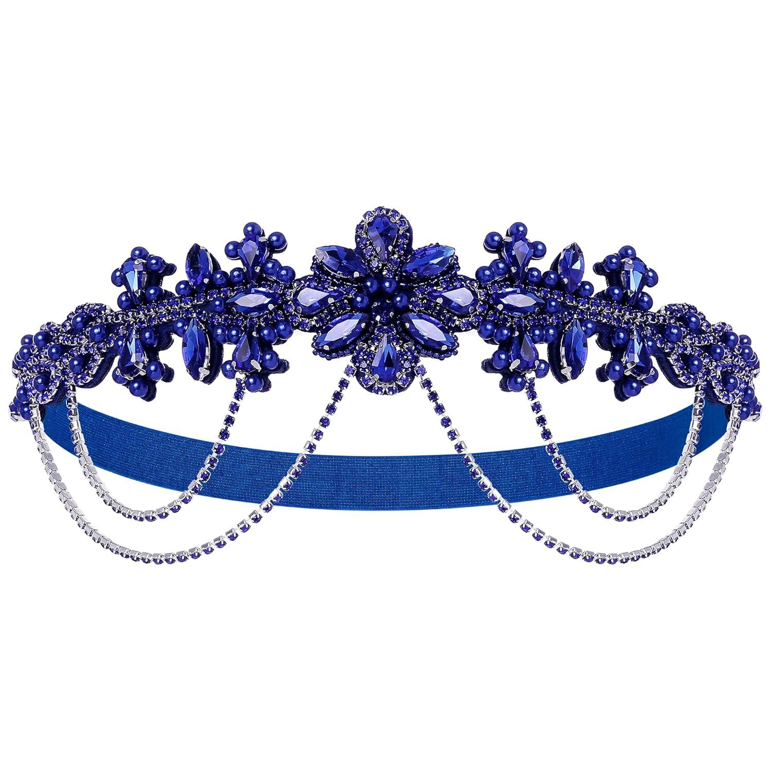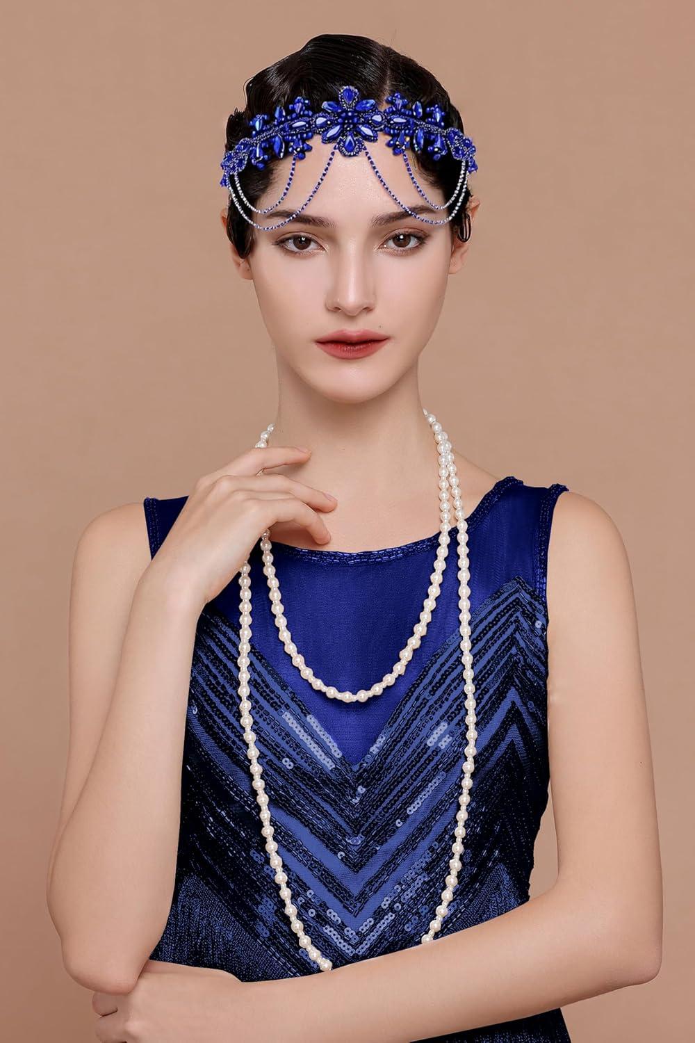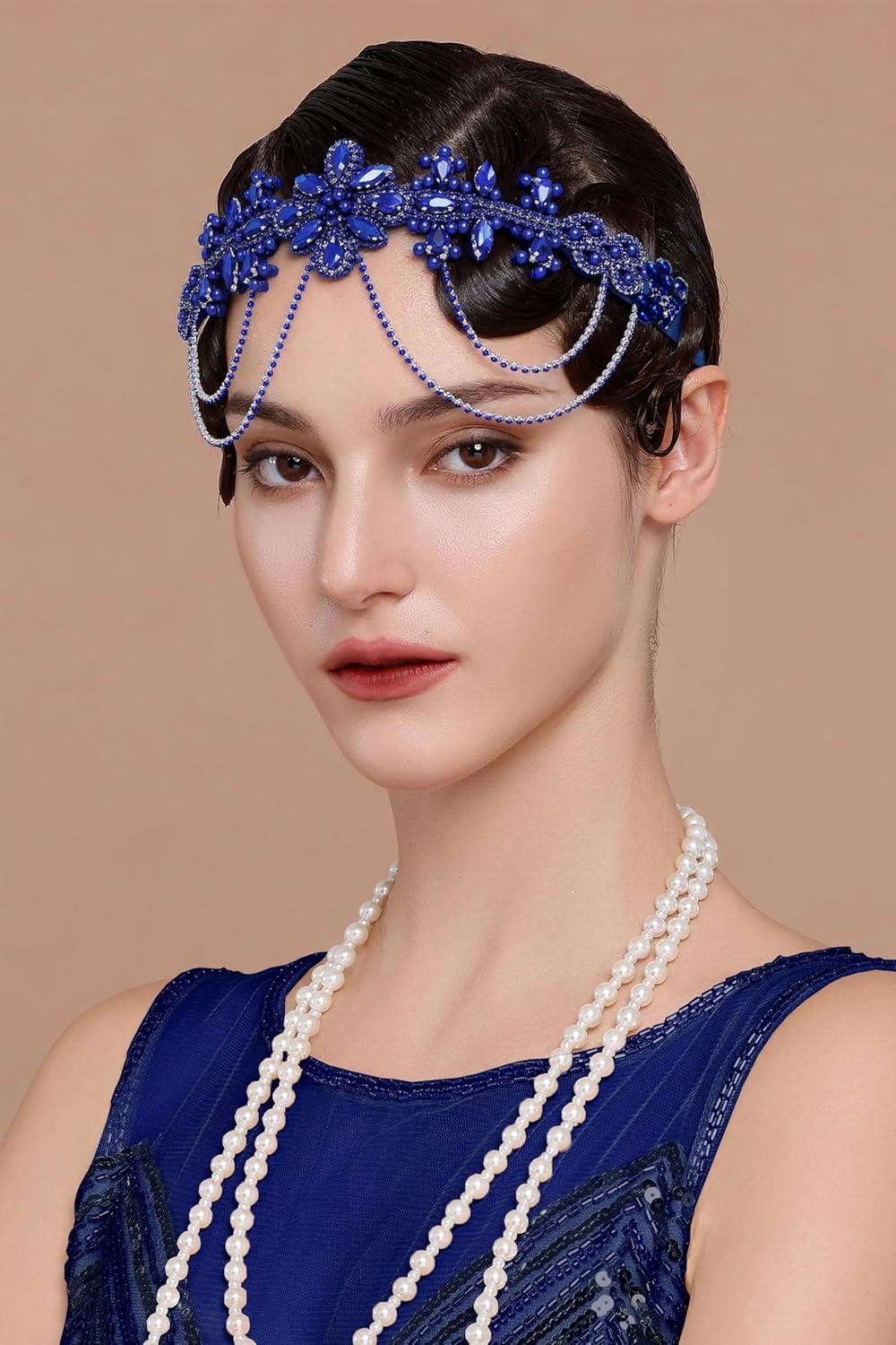 BABEYOND 1920s Flapper Headpiece Roaring 20s Headband Great Gatsby Headband Chain for Women Vintage Hair Accessory(Blue)
