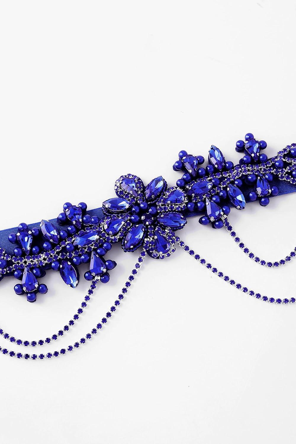 Design: Stunning rhinestone chains that dangle naturally in a symmetrical fashion; Embroidered with decorative floral patterns consisting of shinning crystals and beads.