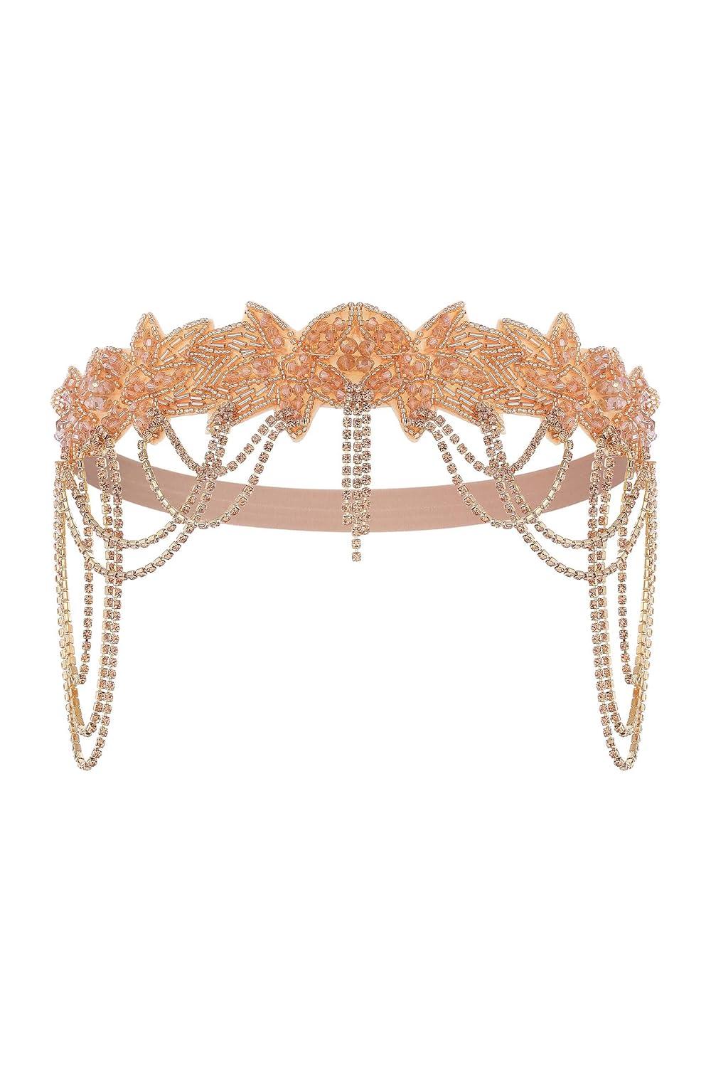 imageBABEYOND 1920s Flapper Headpiece Roaring 20s Headband Great Gatsby Headband Chain for Women Vintage Hair AccessoryChampagne