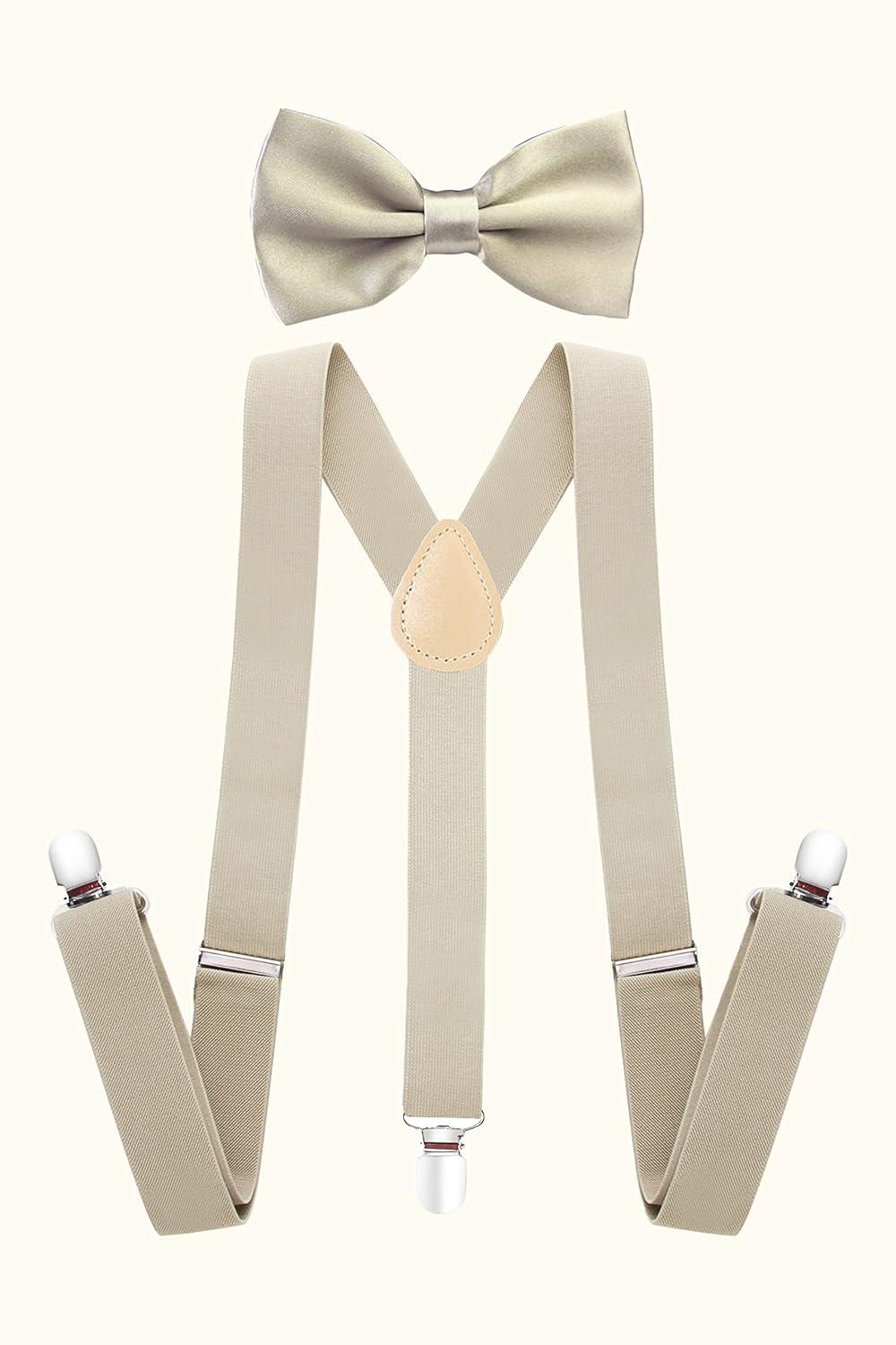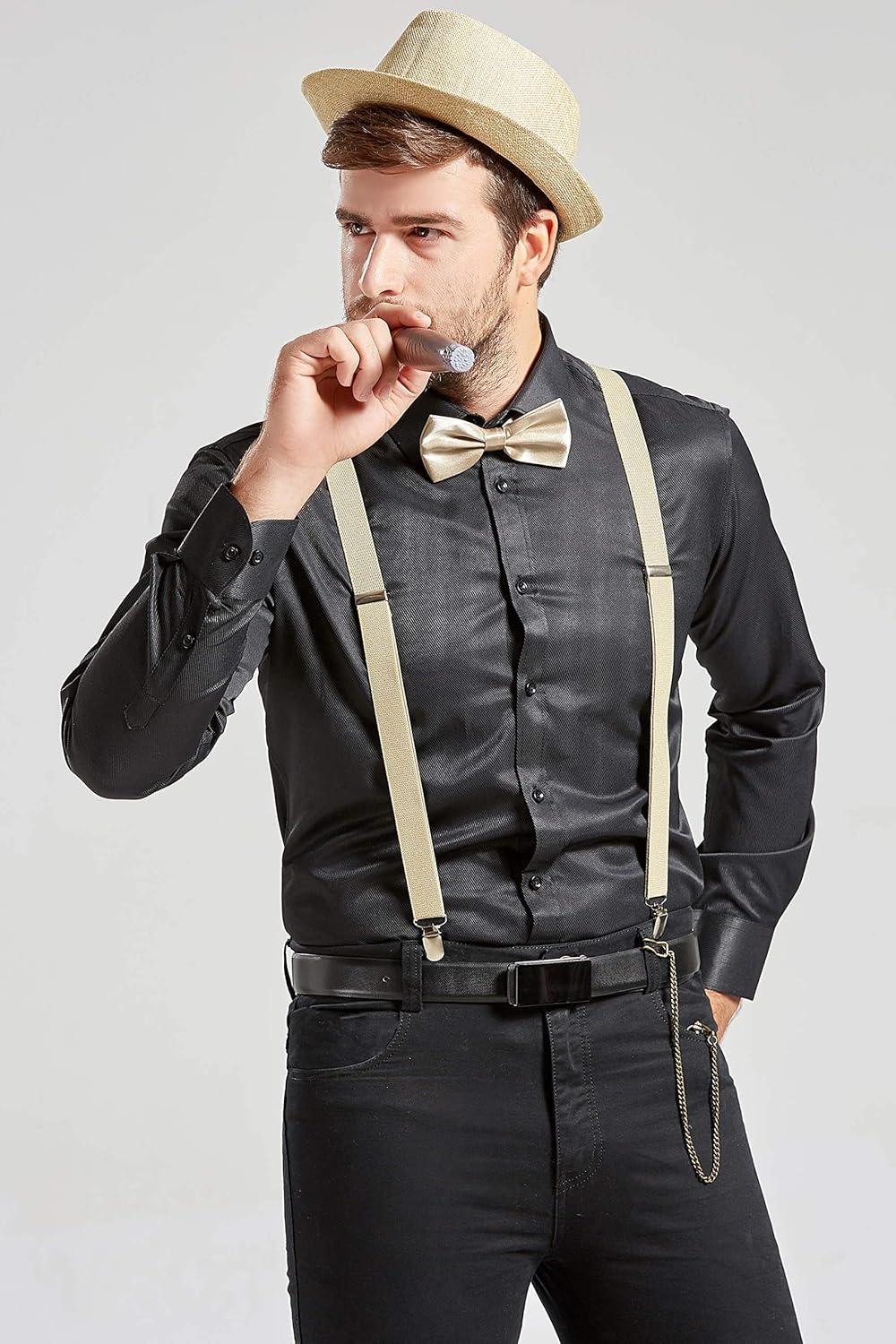 BABEYOND 1920s Mens Gatsby Gangster Accessories Set Panama Hat Suspender Bow Tie(Beige Set)