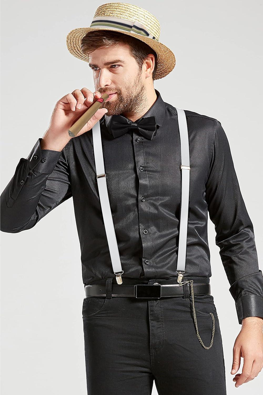BABEYOND 1920s Mens Gatsby Gangster Costume Accessories Set 30s Manhattan Fedora Hat Suspenders(Blacky)