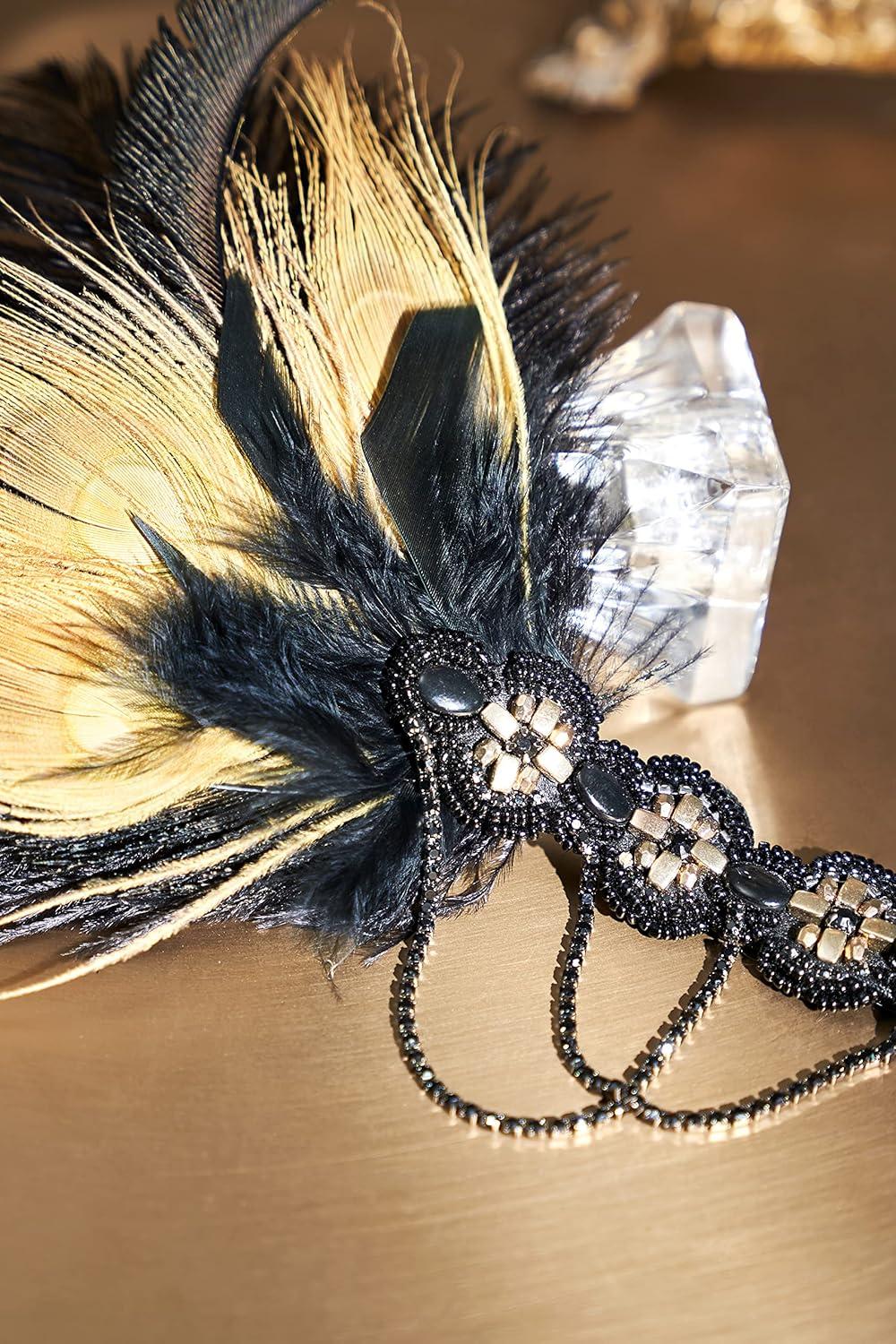 BABEYOND 1920s Sequined Showgirl Headpiece Feather Headband Flapper Gatsby Hair Accessories(Black Gold)