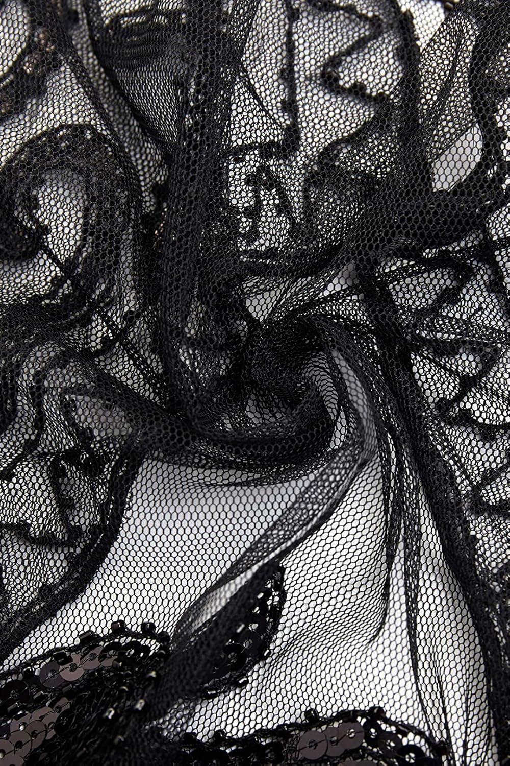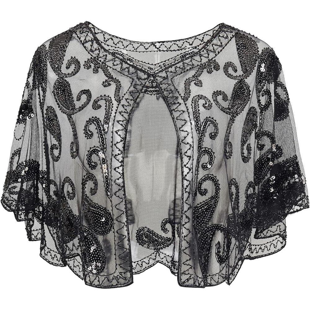 BABEYOND 1920s Shawl Wraps Sequin Beaded Evening Cape Bridal Shawl Bolero Flapper Cover Up(Black)