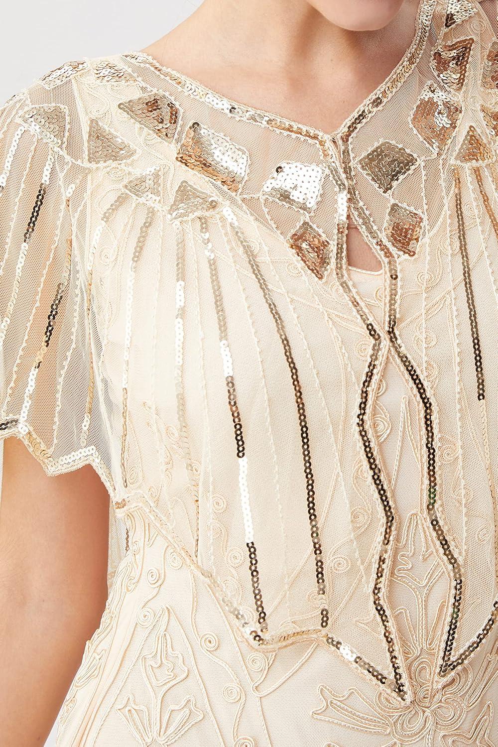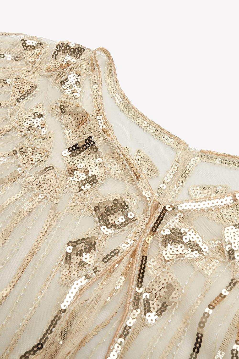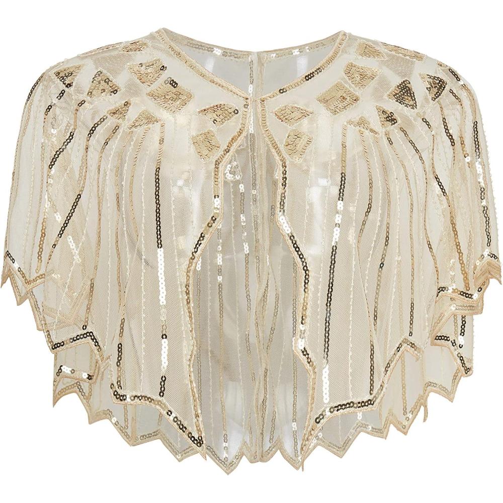 BABEYOND 1920s Shawl Wraps Sequin Beaded Evening Cape Bridal Shawl(Beige-3)