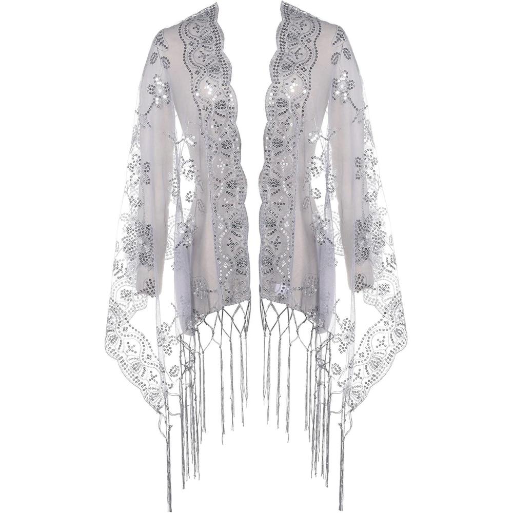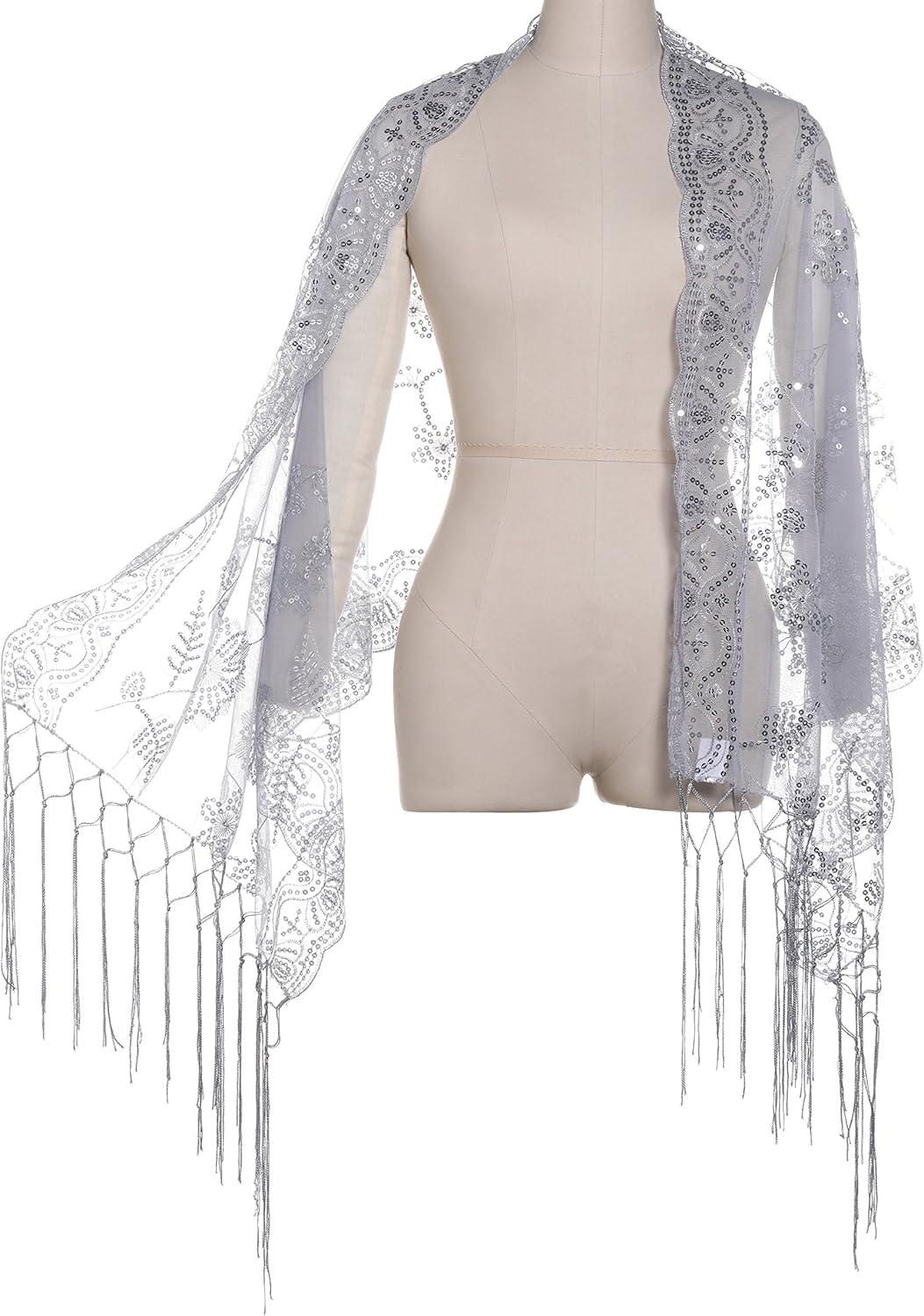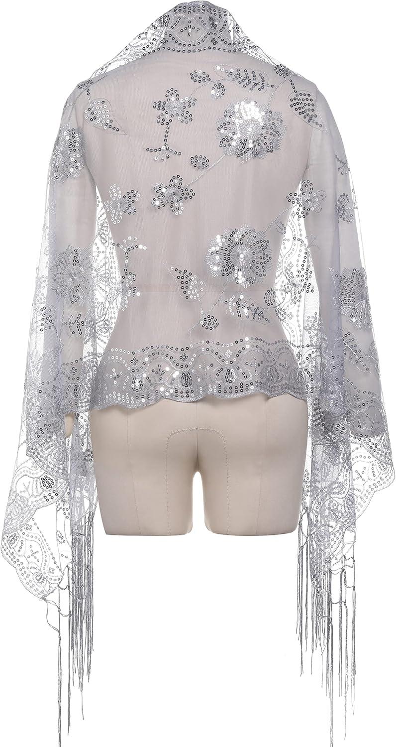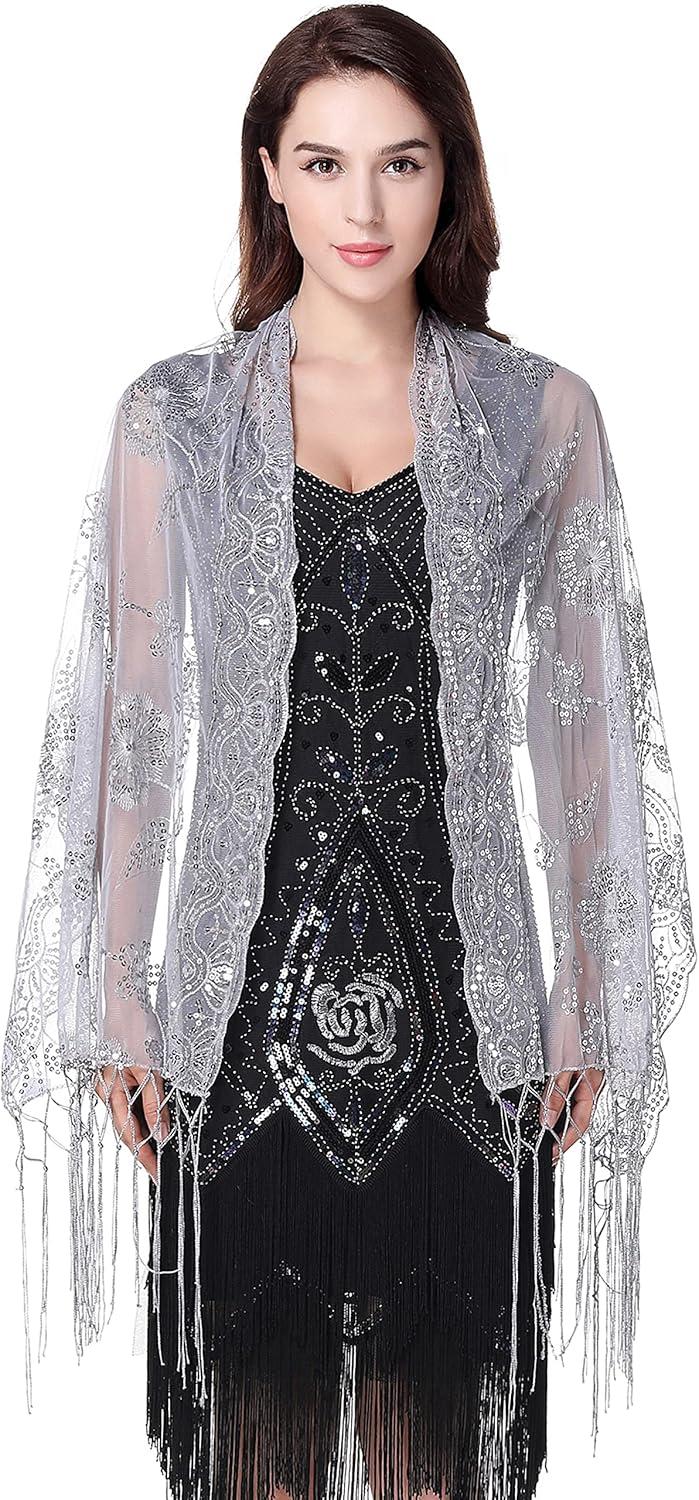 BABEYOND 1920s Shawl Wraps Sequin Fringed Evening Cape Wedding Bridal Shawl Scarf for Evening Dresses Party(Gray-1)