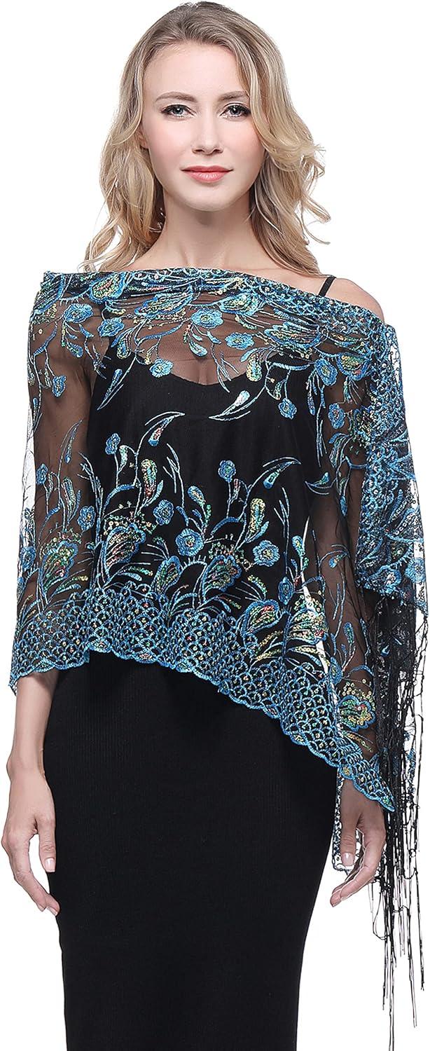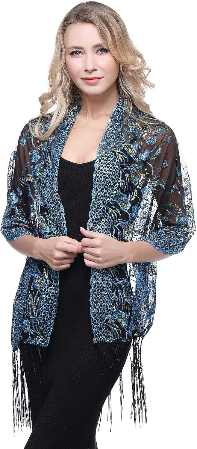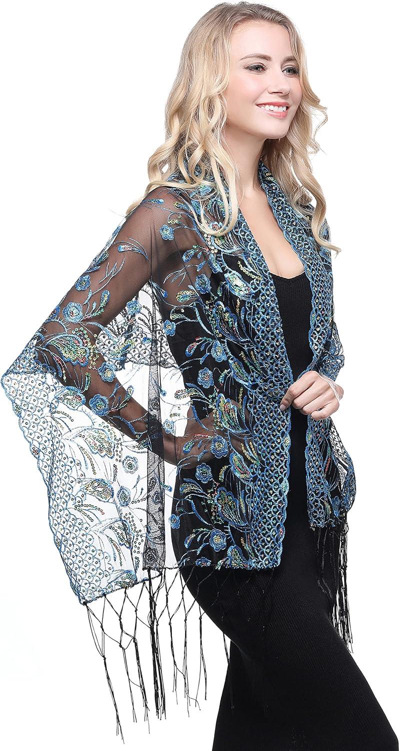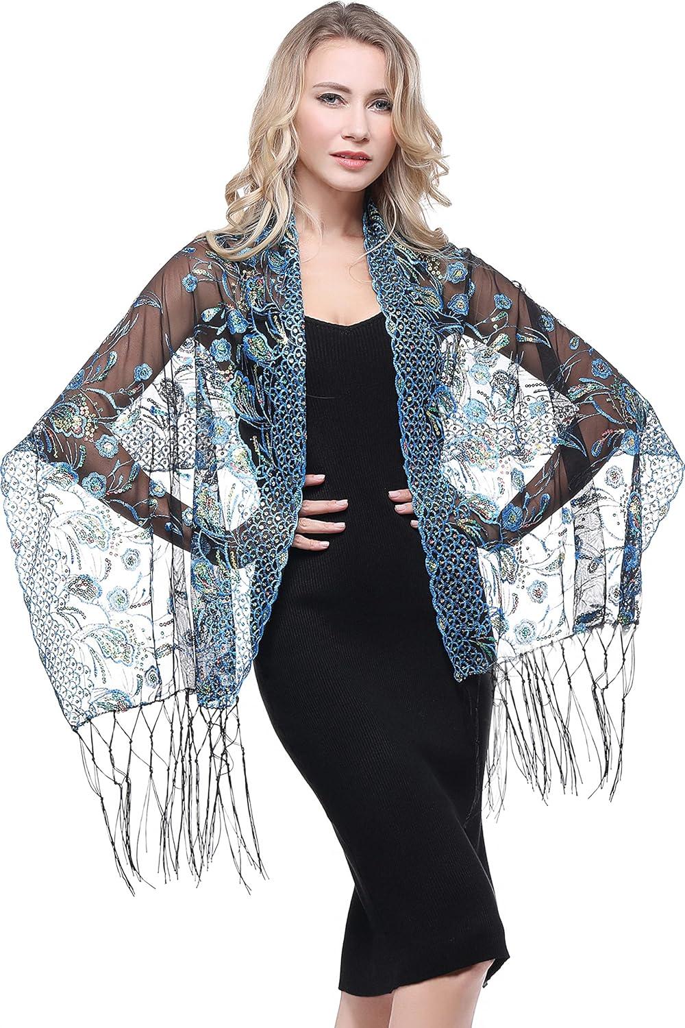 BABEYOND 1920s Shawl Wraps Sequin Fringed Evening Cape Wedding Bridal Shawl Scarf