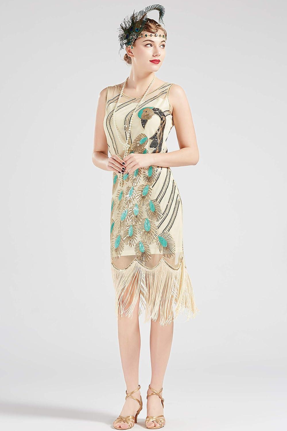 Our clearance event features the best deals on BABEYOND 20’s Vintage Peacock Sequin Fringed Party Flapper Dress(Beige) and accessories. Shop now!
