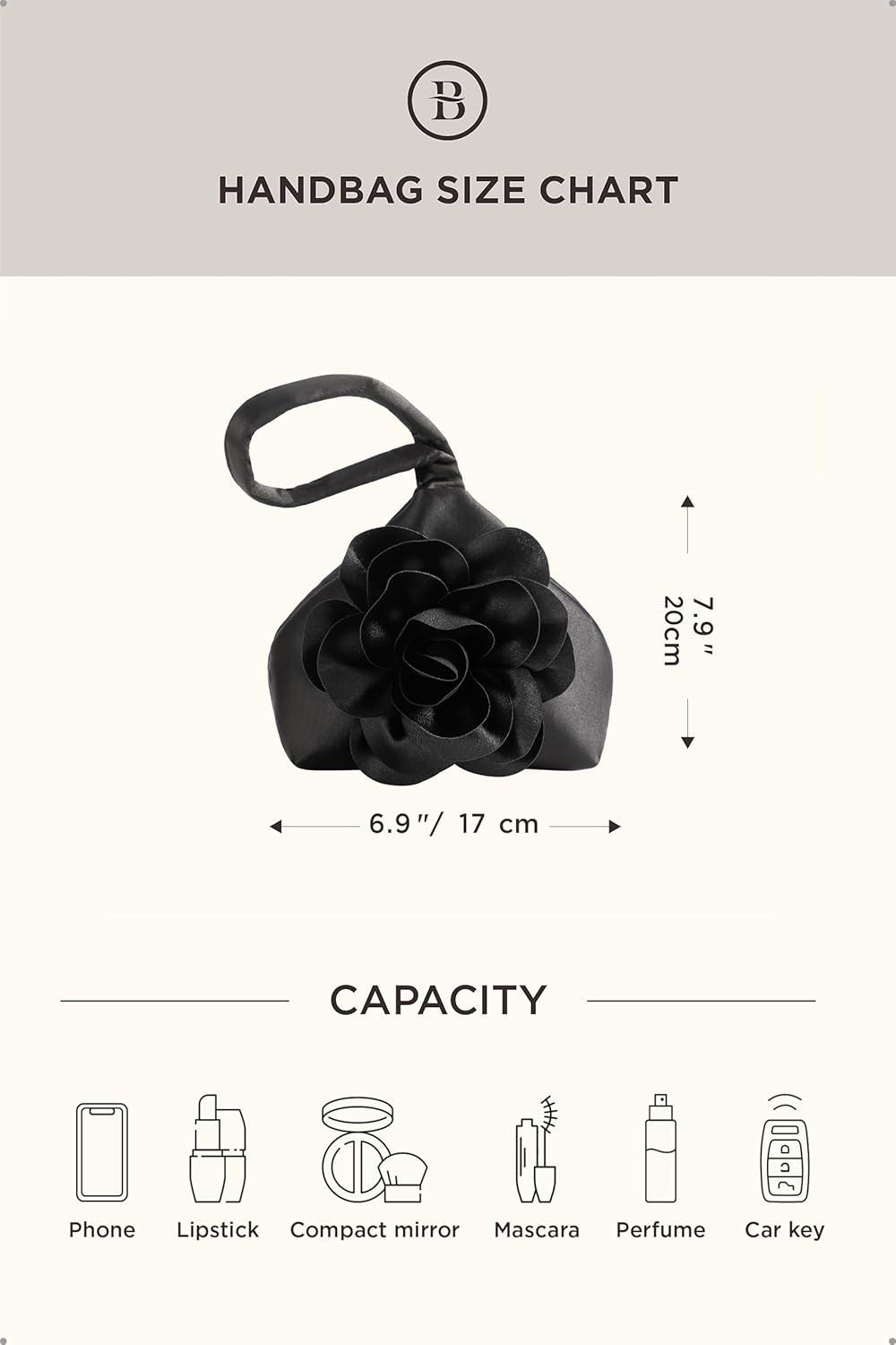 imageBABEYOND Clutch Purses for Women  Evening Bags Flower Satin Handbag Classy Wristlet Purse for Party Daily WeddingBlack