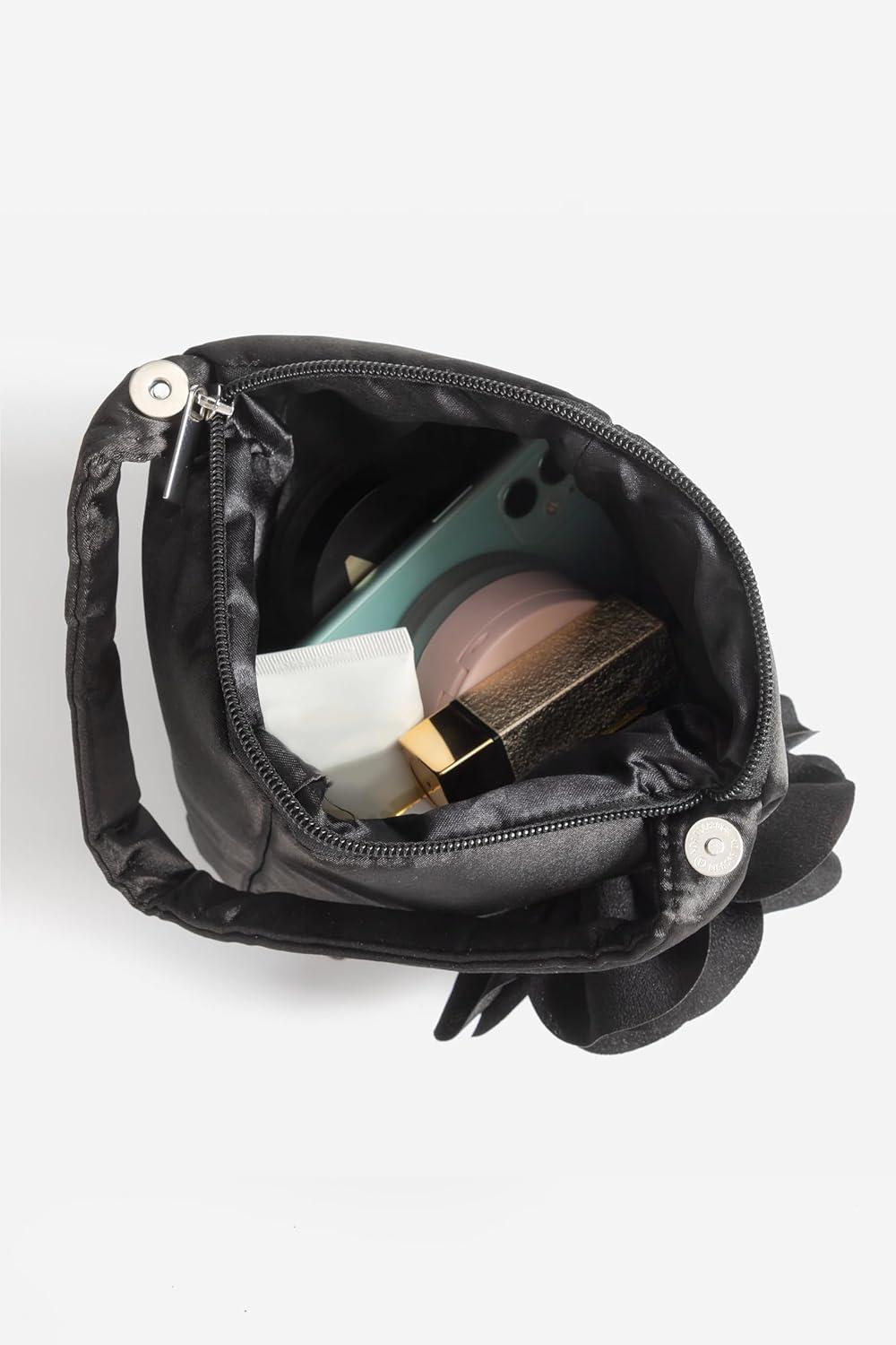 BABEYOND Clutch Purses for Women - Evening Bags Flower Satin Handbag Classy Wristlet Purse for Party Daily Wedding(Black)