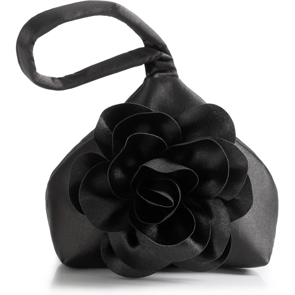 BABEYOND Clutch Purses for Women – Evening Bags Flower Satin Handbag Classy Wristlet Purse for Party Daily Wedding(Black)