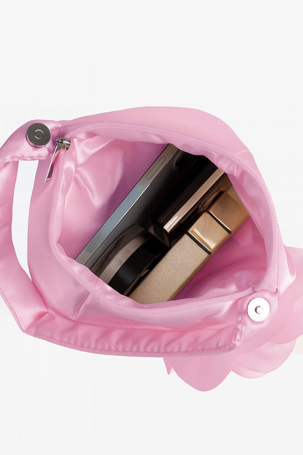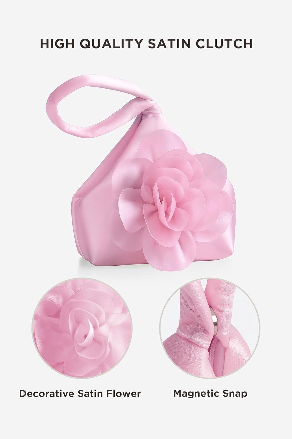 BABEYOND Clutch Purses for Women – Evening Bags Flower Satin Handbag Classy Wristlet Purse for Party Daily Wedding(Pink)