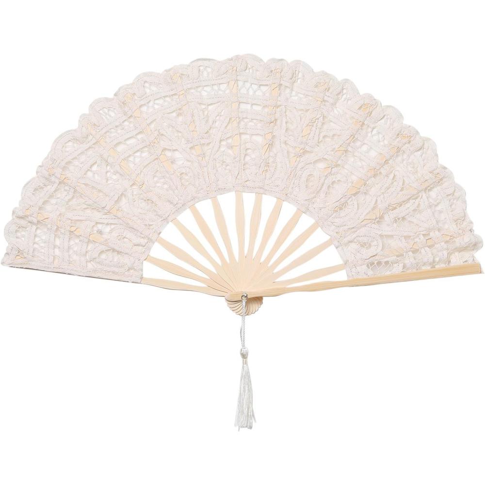 Material: Cotton lace fabric, bamboo ribs and tassel pendent.