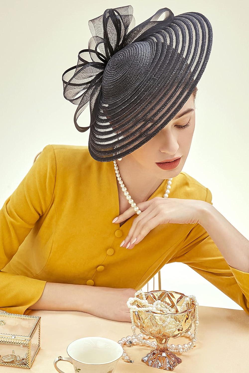 BABEYOND Derby Hats for Women – Fascinators Tea Party Hats Headband Wide Brim Fascinator Wedding Cocktail Feathers