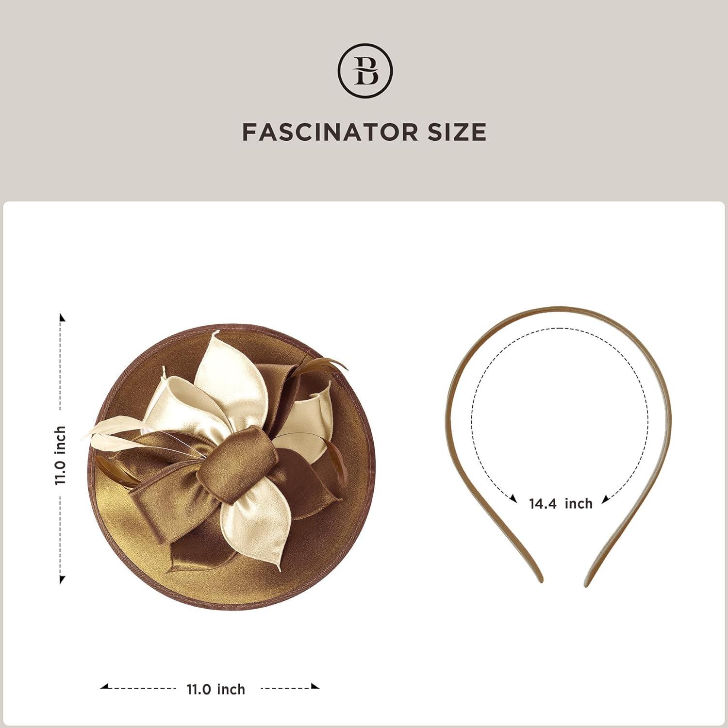 BABEYOND Derby Hats for Women – Fascinators Tea Party Hats Headband Wide Brim Fascinator Wedding Cocktail Flower Feathers(Coffee)