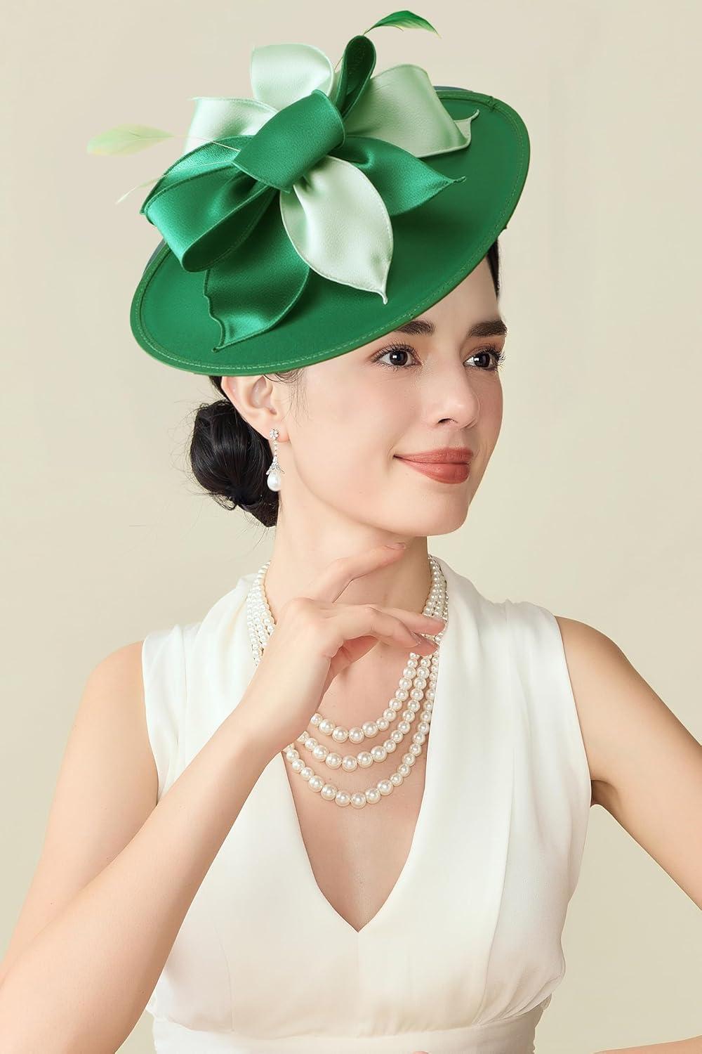 BABEYOND Derby Hats for Women – Fascinators Tea Party Hats Headband Wide Brim Fascinator Wedding Cocktail Flower Feathers(Dark Green)