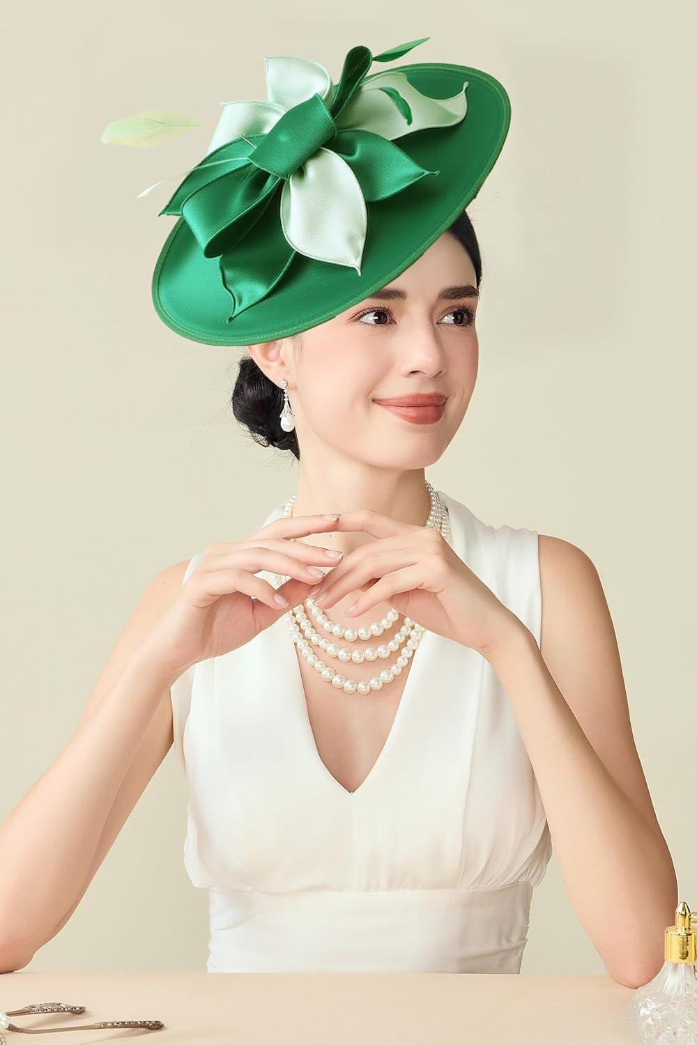 BABEYOND Derby Hats for Women – Fascinators Tea Party Hats Headband Wide Brim Fascinator Wedding Cocktail Flower Feathers(Green)