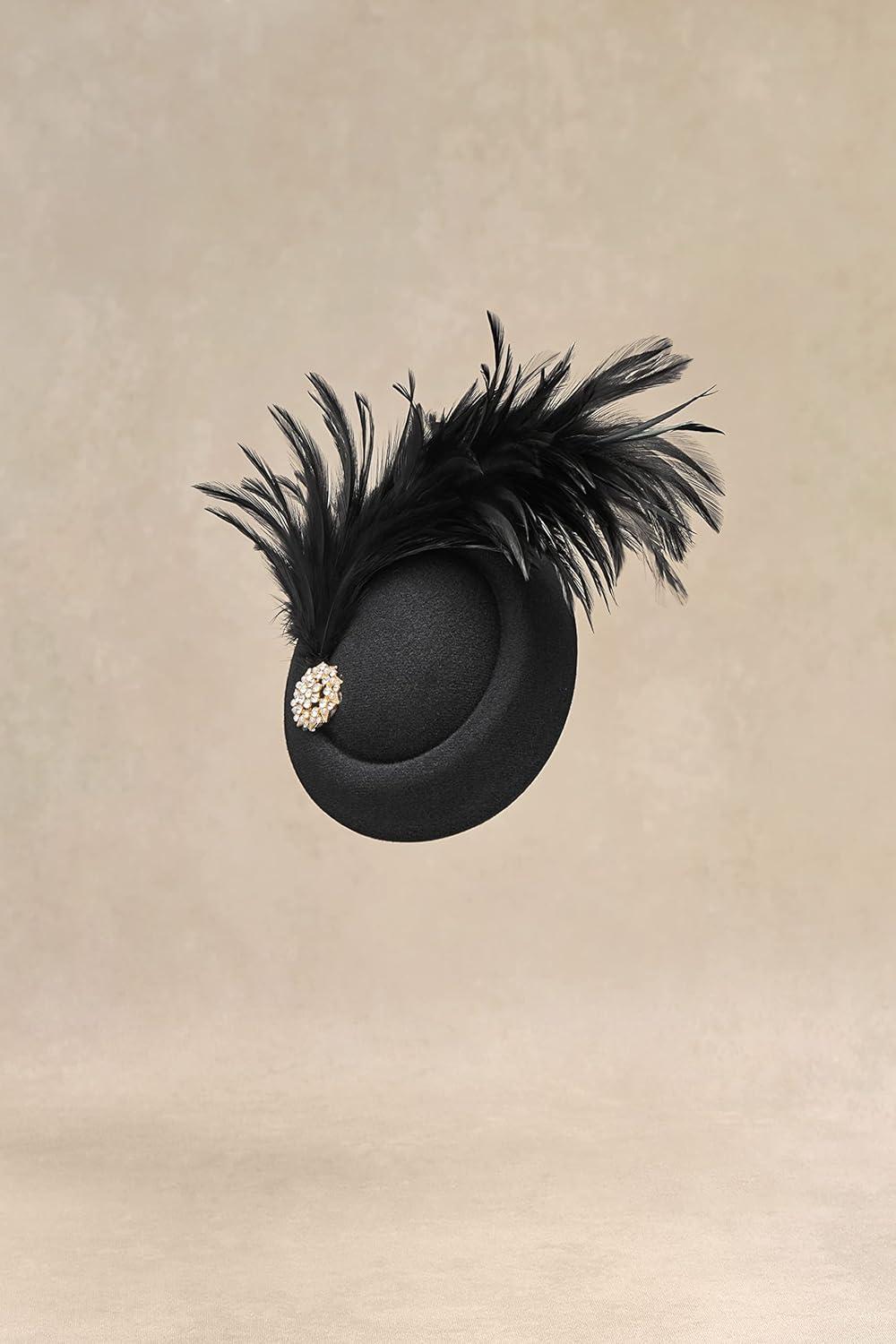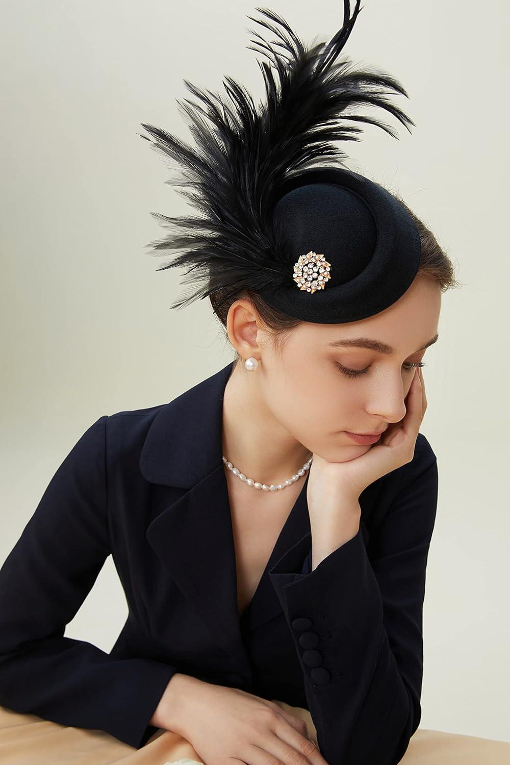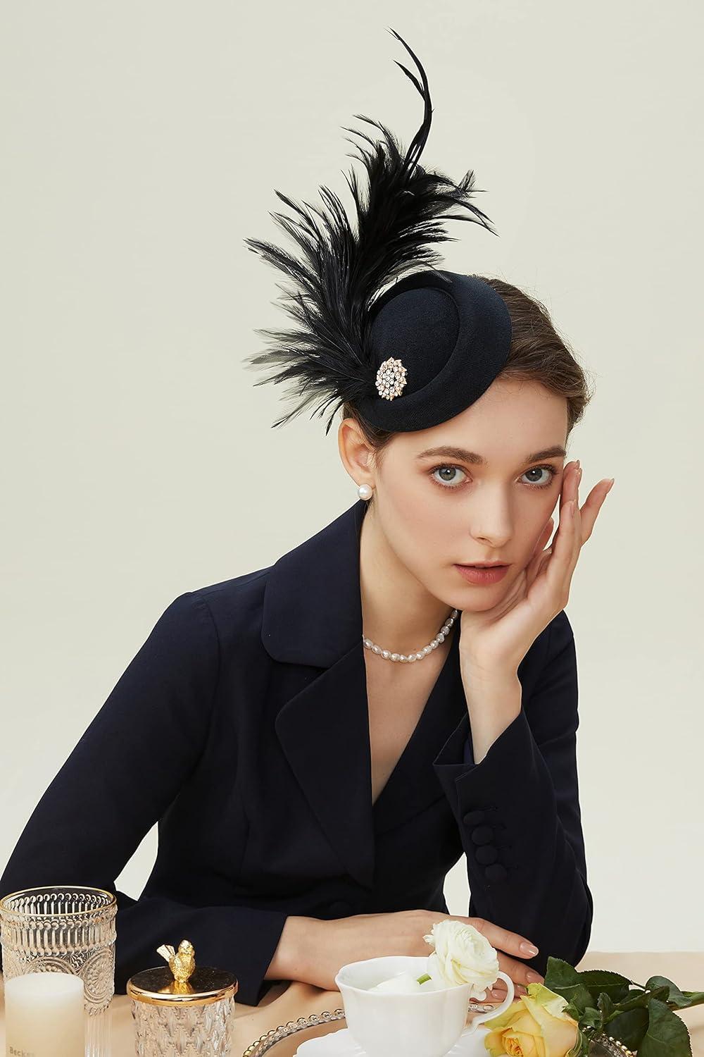 BABEYOND Fascinator Hat for Women Tea Party Kentucky Derby Pillbox Headpiece Costume Feathers Carnival Head Wear(Black)
