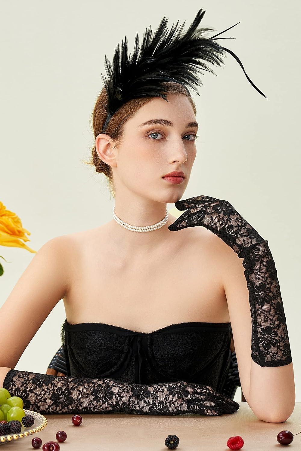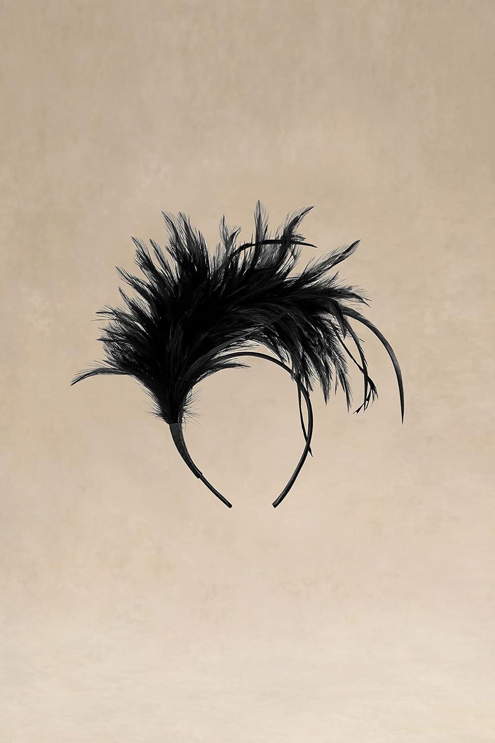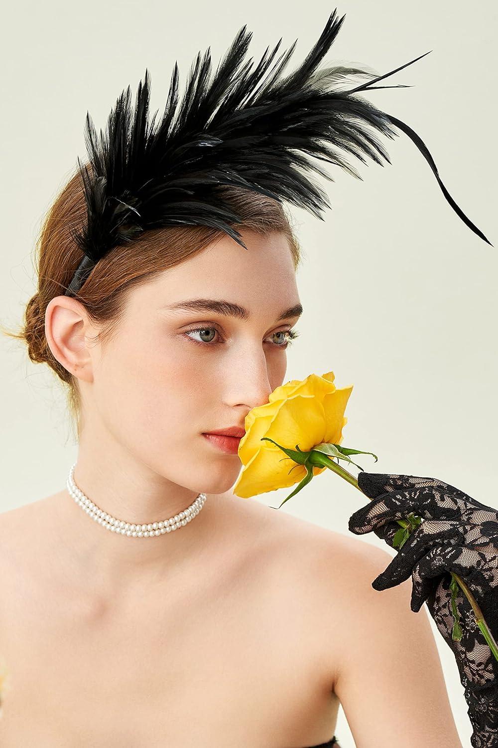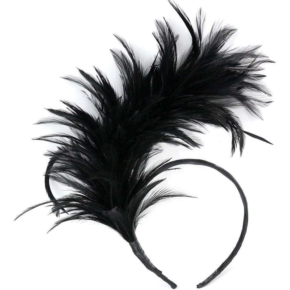 BABEYOND Fascinator Hats for Women Feather Headband Kentucky Headpiece Gatsby Derby Hat for Cocktail Wedding Tea Party(Black)