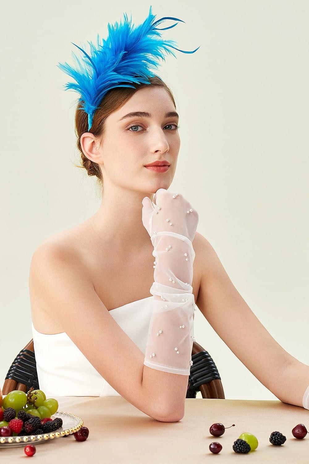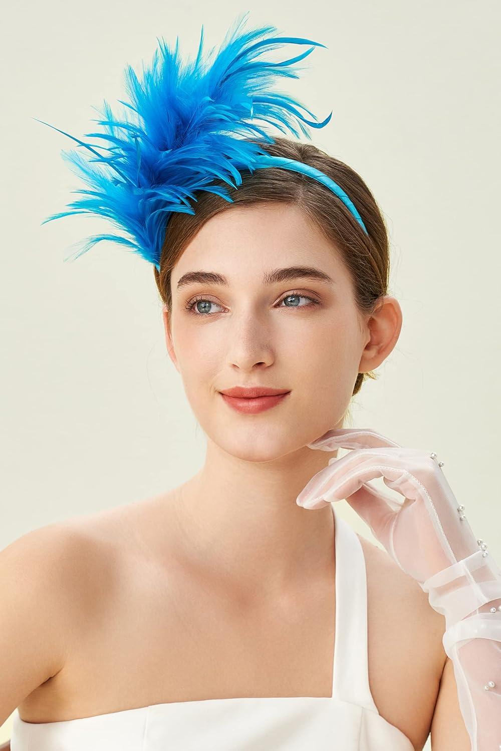 BABEYOND Fascinator Hats for Women Feather Headband Kentucky Headpiece Gatsby Derby Hat for Cocktail Wedding Tea Party(Lake Blue)