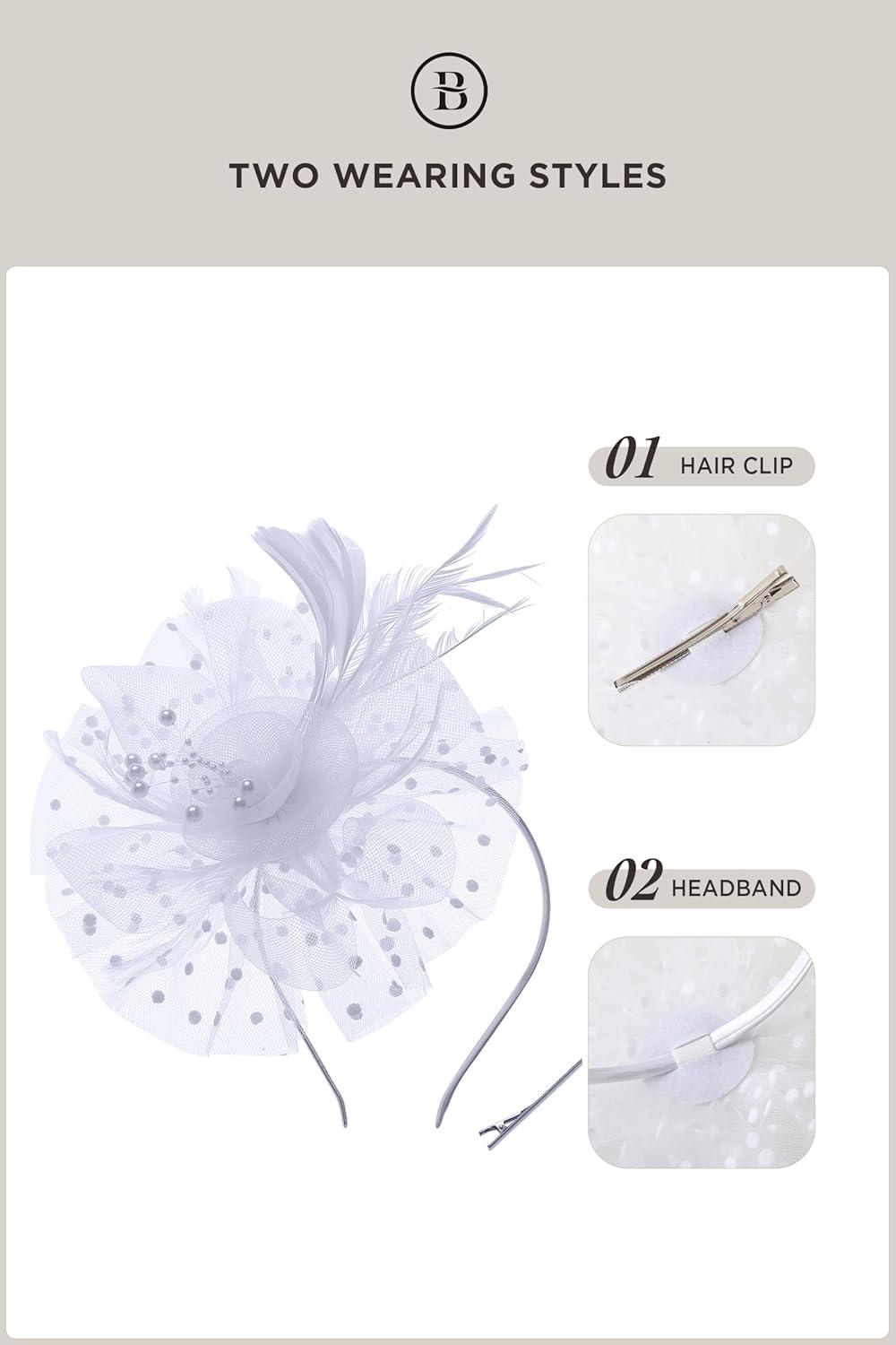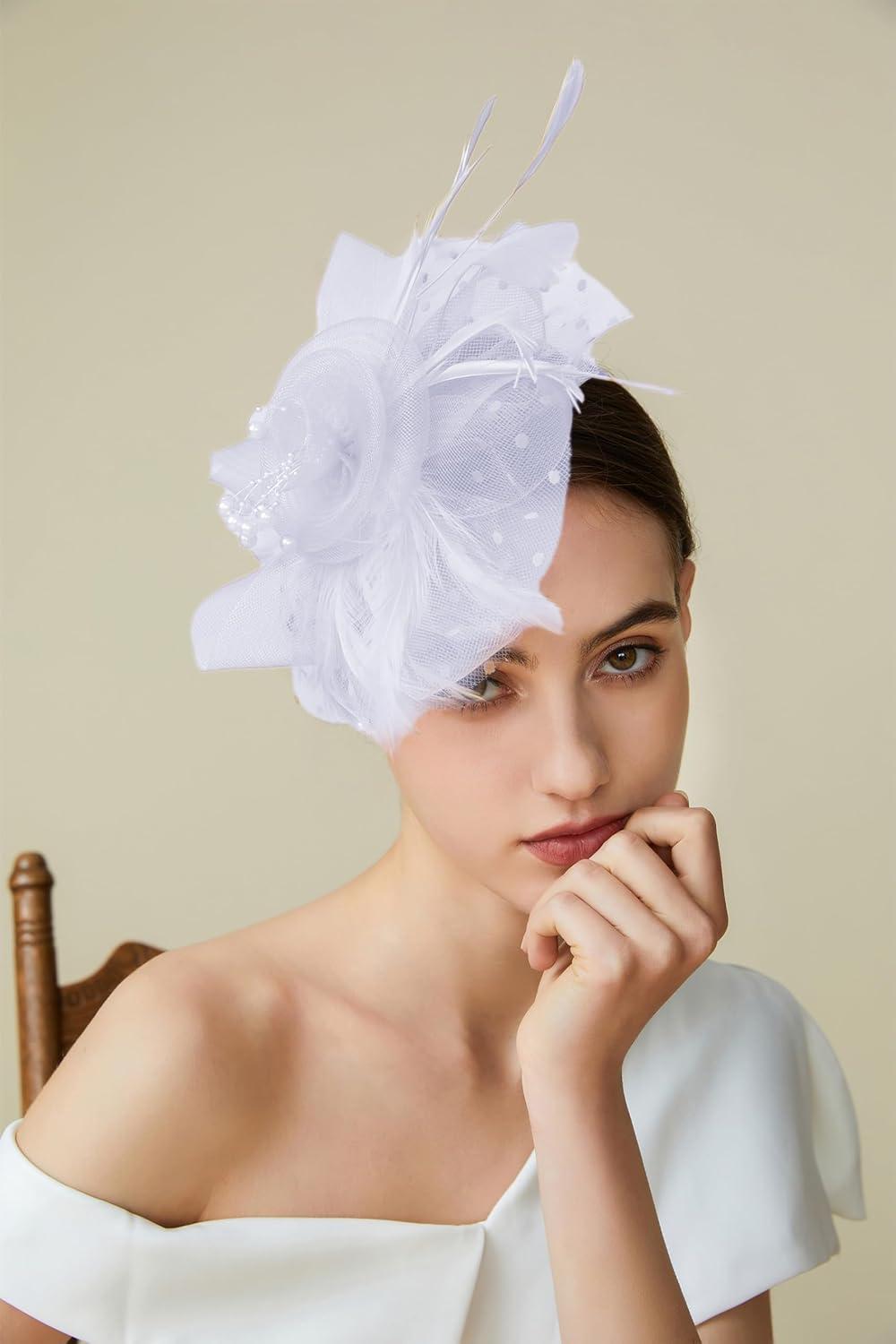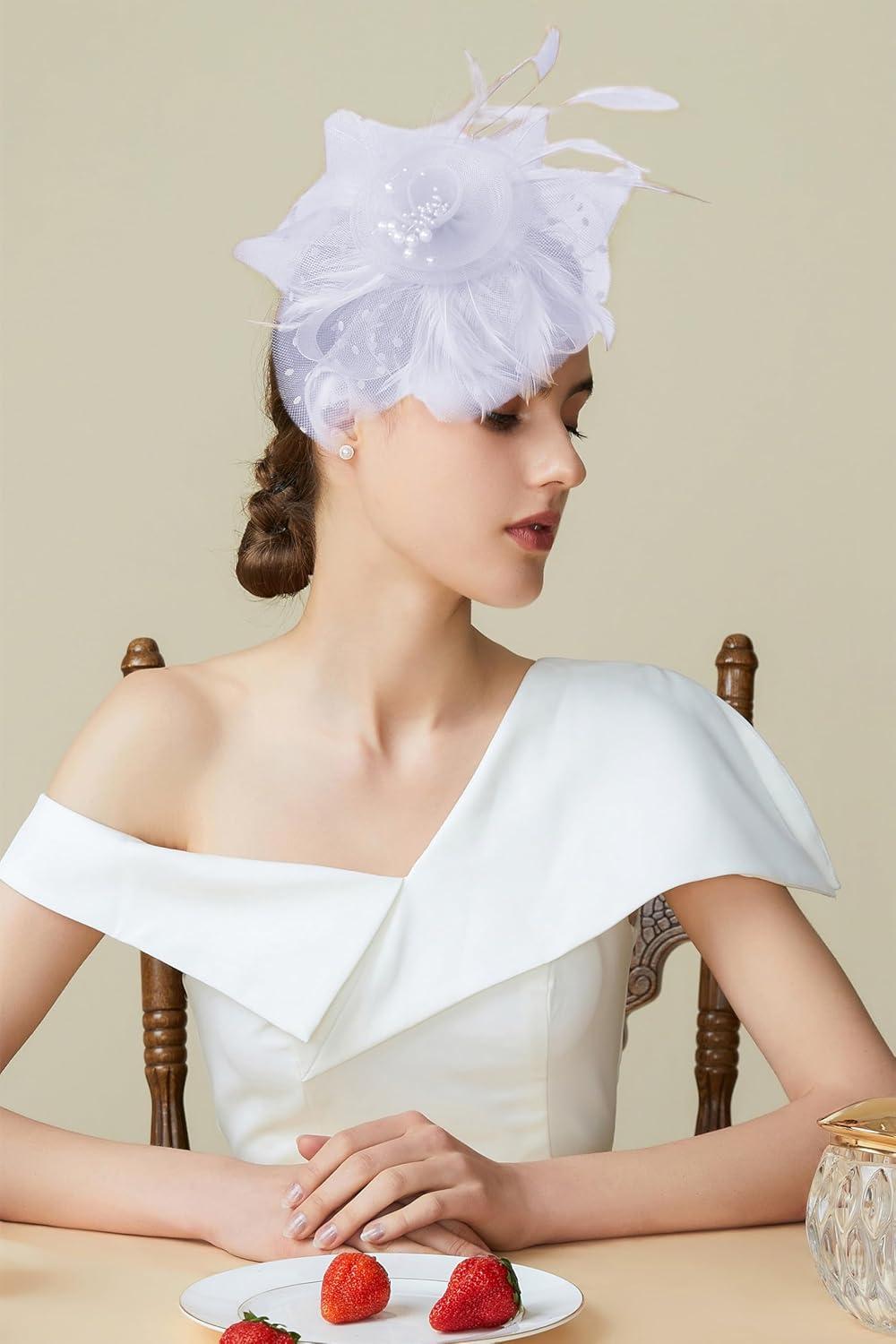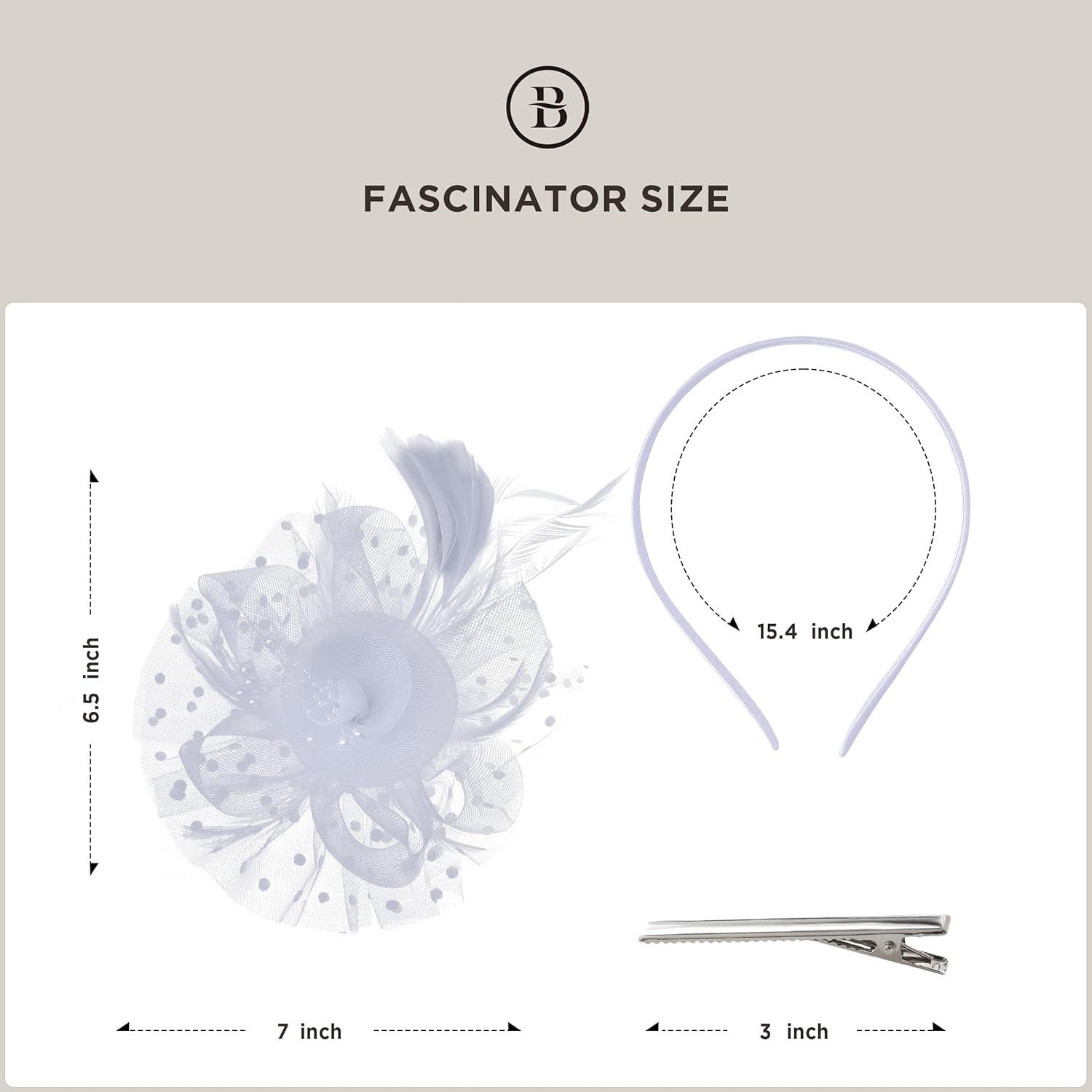 BABEYOND Fascinator Hats for Women Tea Party Hat Kentucky Fascinators Headband Derby Hats Wedding Flower Feathers Hair Clip(Gray)
