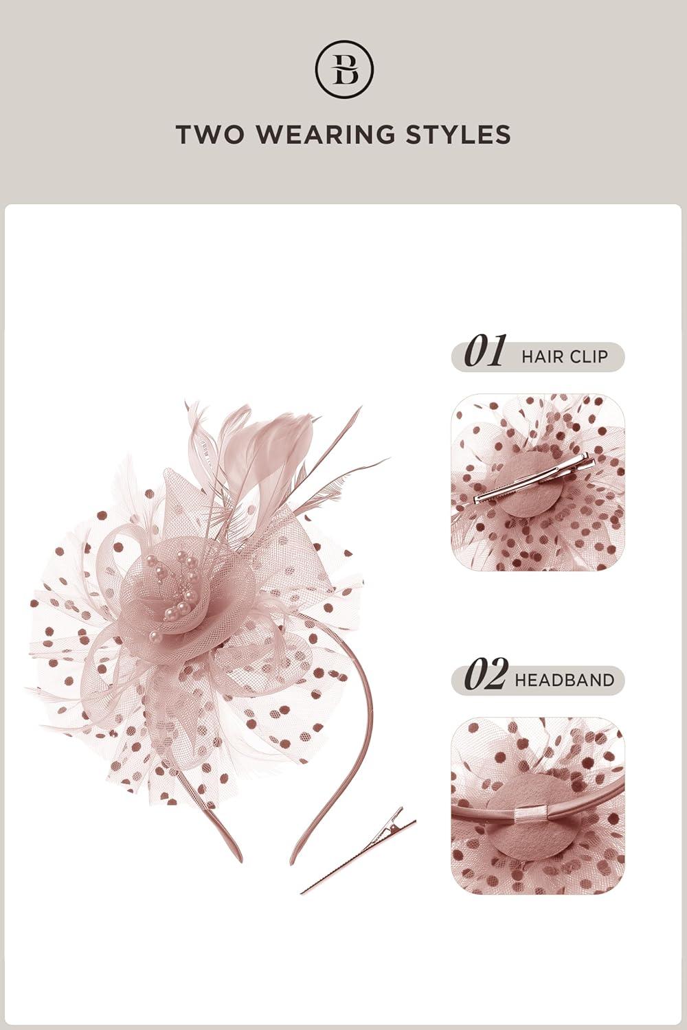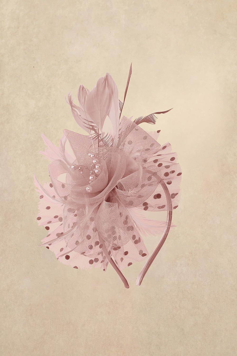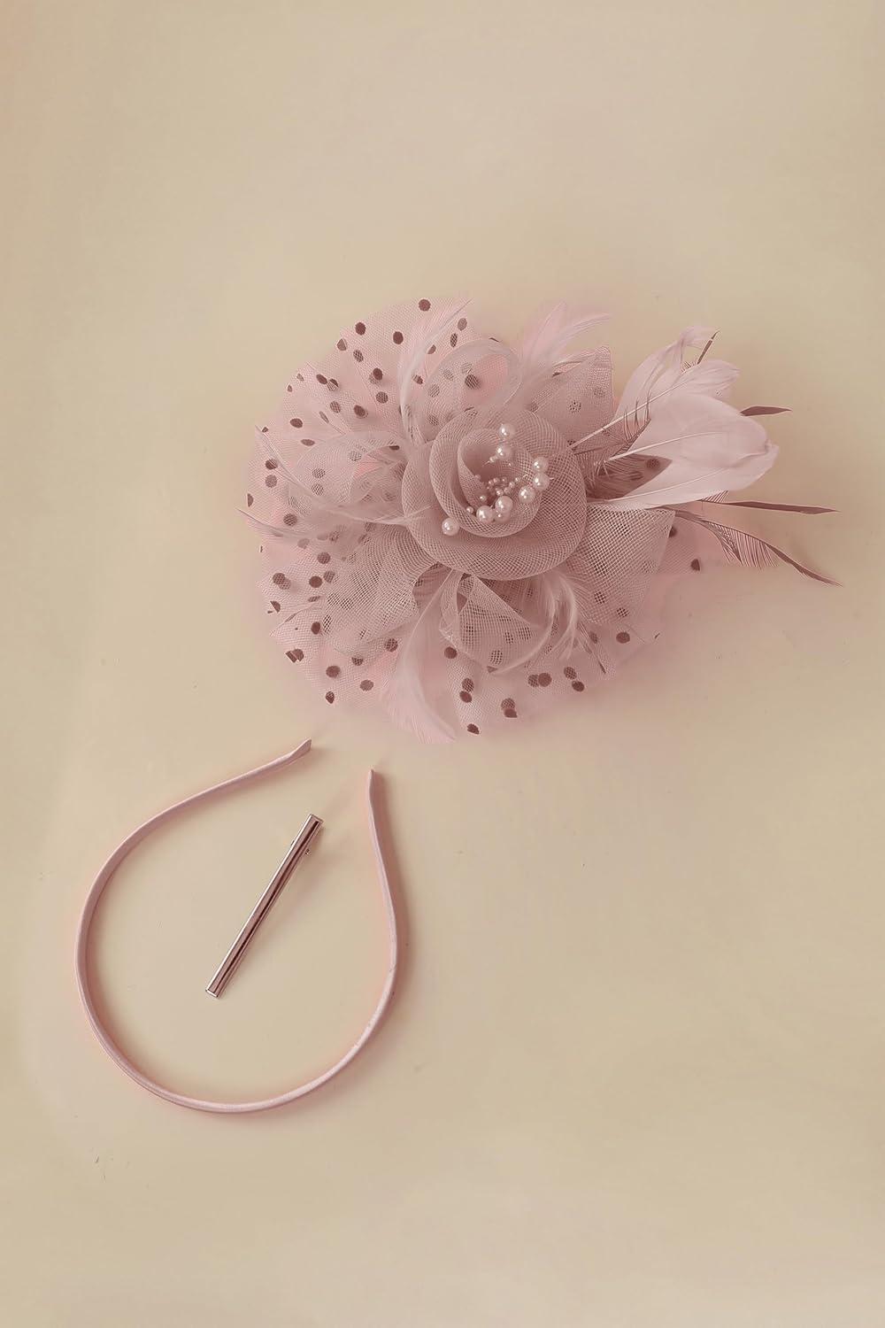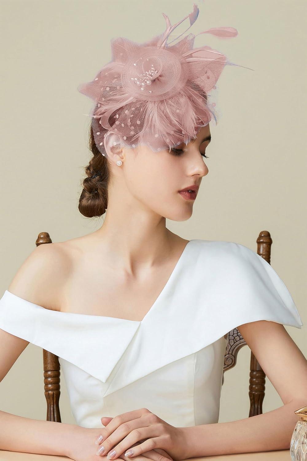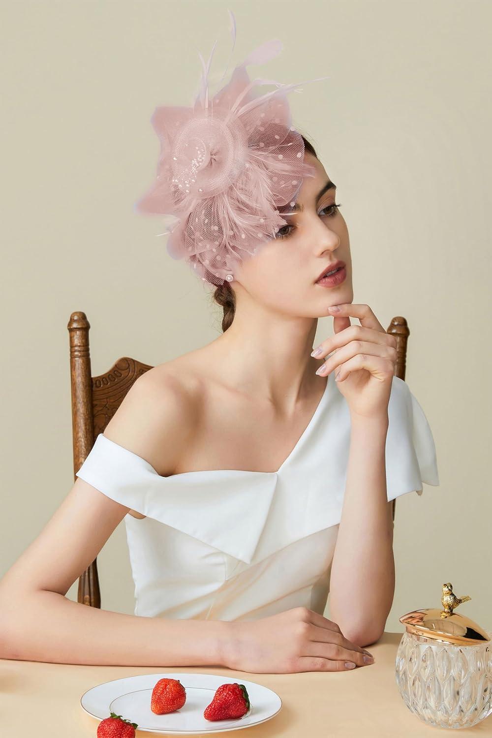 BABEYOND Fascinator Hats for Women Tea Party Hat Kentucky Fascinators Headband Derby Hats Wedding Flower Feathers Hair Clip(Nude Pink)