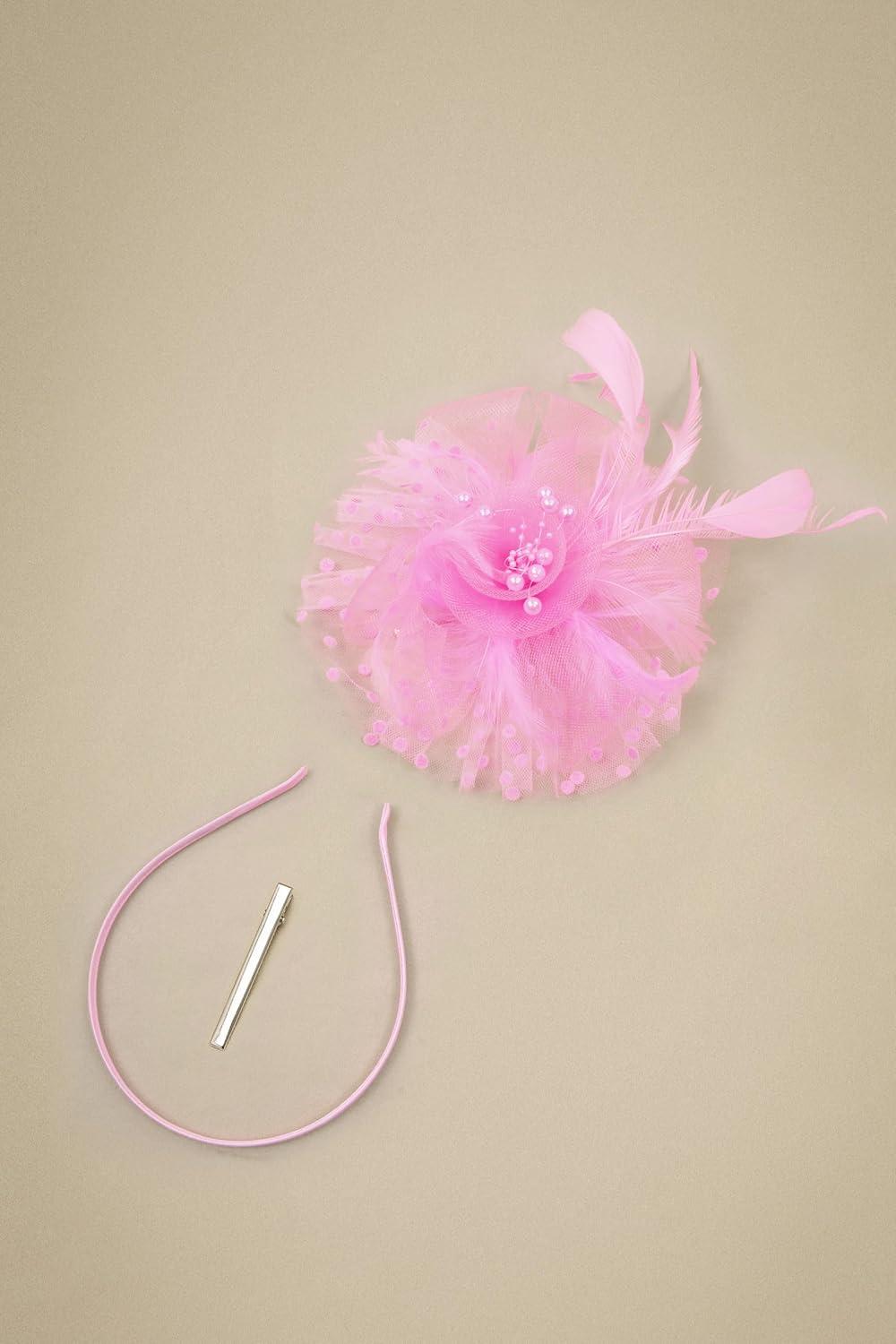 BABEYOND Fascinator Hats for Women Tea Party Hat Kentucky Fascinators Headband Derby Hats Wedding Flower Feathers Hair Clip(Pink)