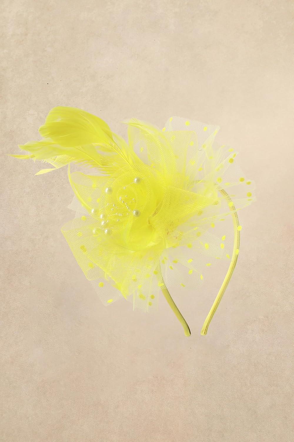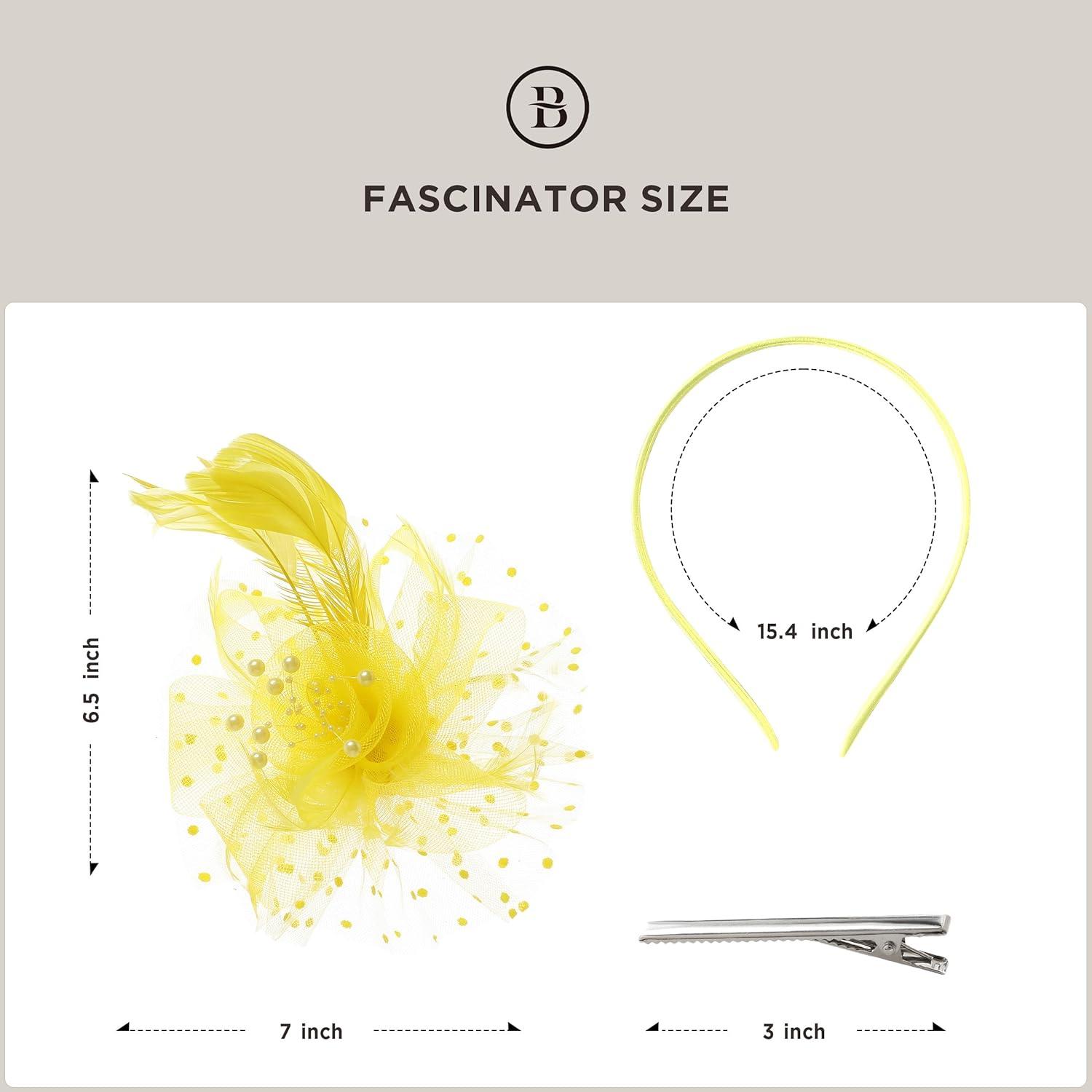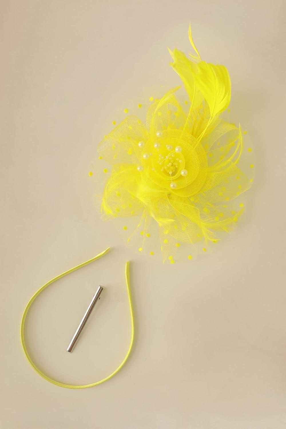 BABEYOND Fascinator Hats for Women Tea Party Hat Kentucky Fascinators Headband Derby Hats Wedding Flower Feathers Hair Clip(Yellow)