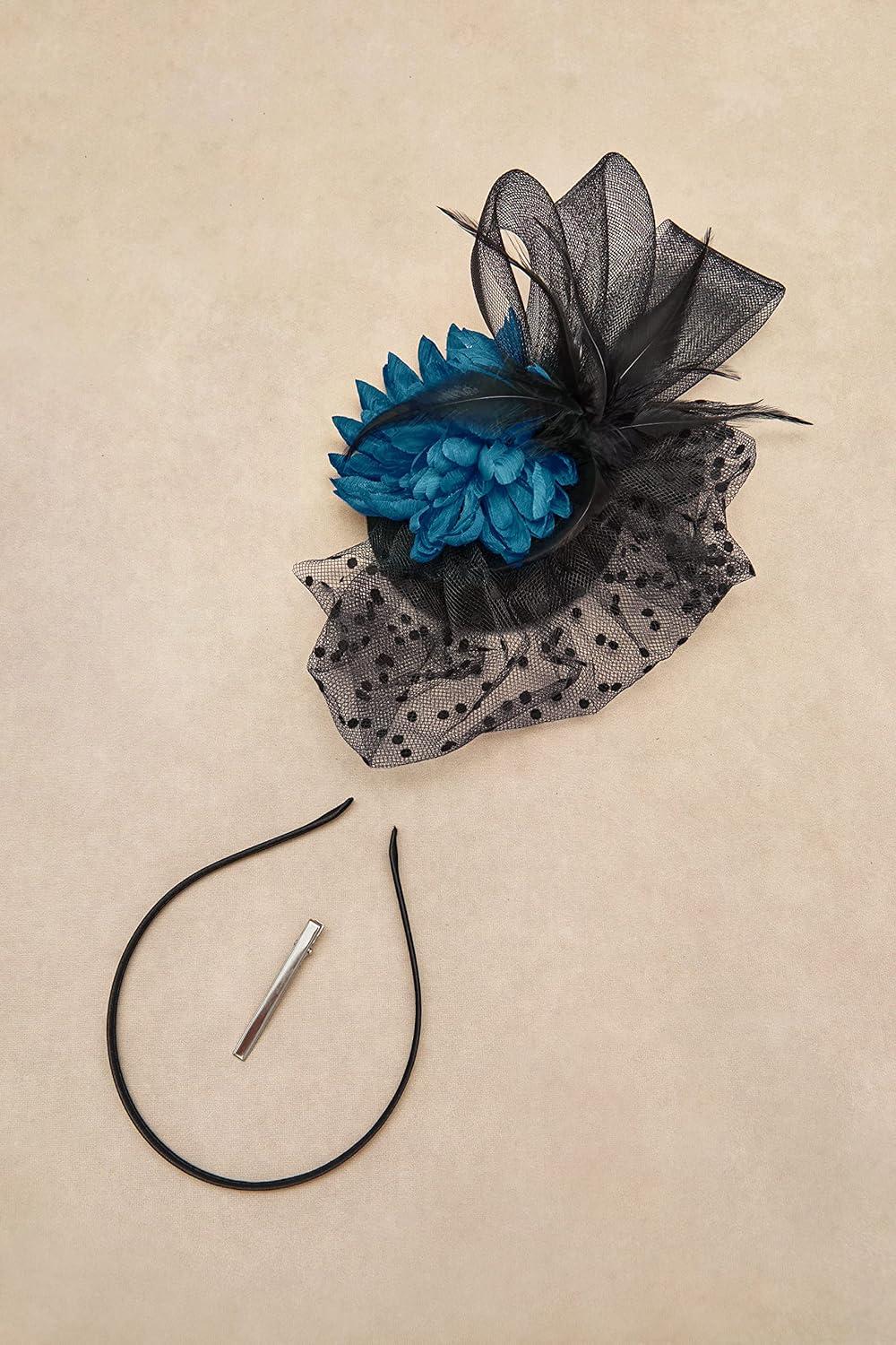 BABEYOND Fascinator Hats for Women – Tea Party Hats Kentucky Fascinators Derby Hat Wedding Cocktail Flower Feathers Hair Clip(B-black With Navy Blue Flower)