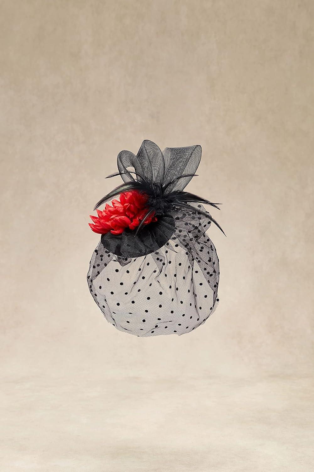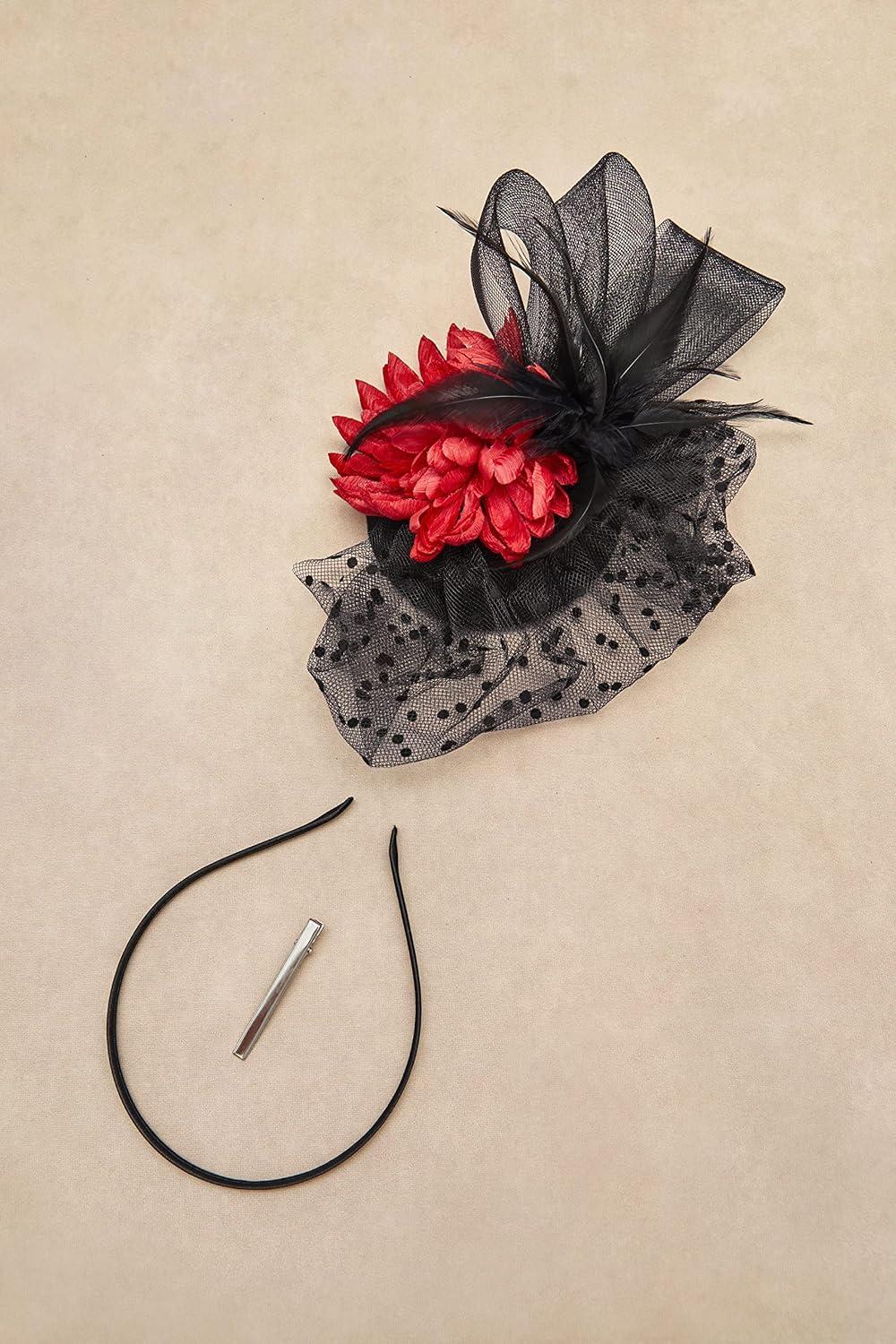 BABEYOND Fascinator Hats for Women - Tea Party Hats Kentucky Fascinators Derby Hat Wedding Cocktail Flower Feathers Hair Clip(B-black With Red Flower)