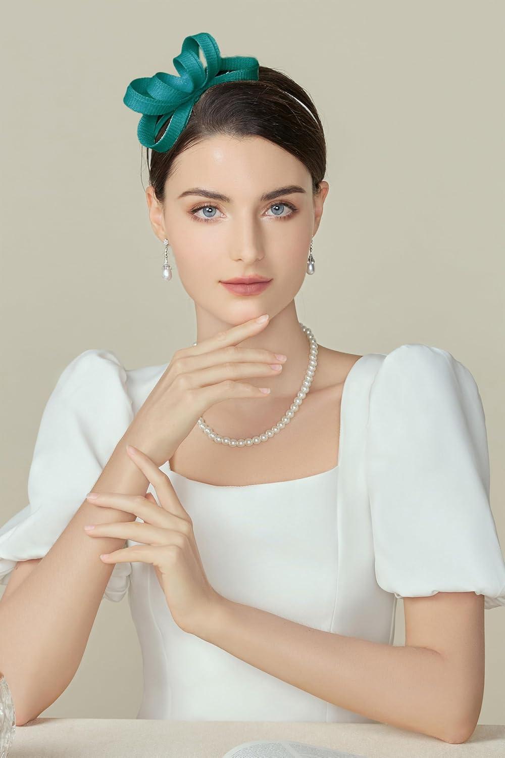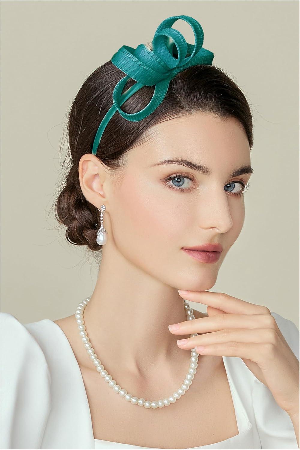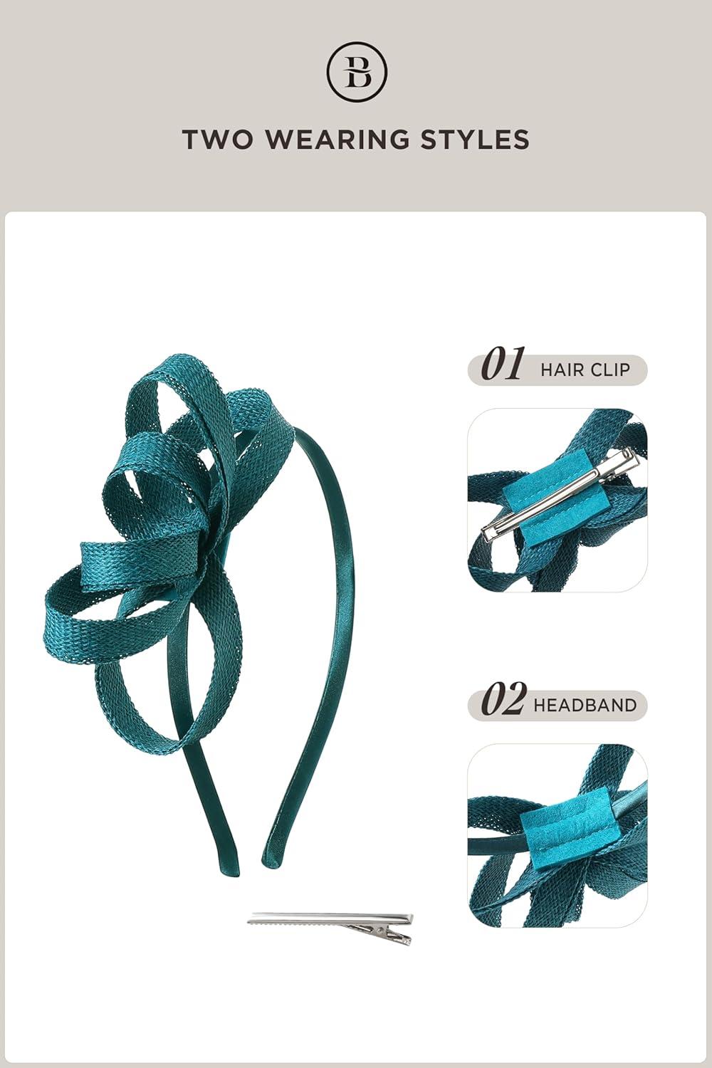 BABEYOND Fascinator Headband for Women - Tea Party Kentucky Bow Headband Derby Bridal Wedding Daily Headpiece with Hair Clip(Dark Teal)