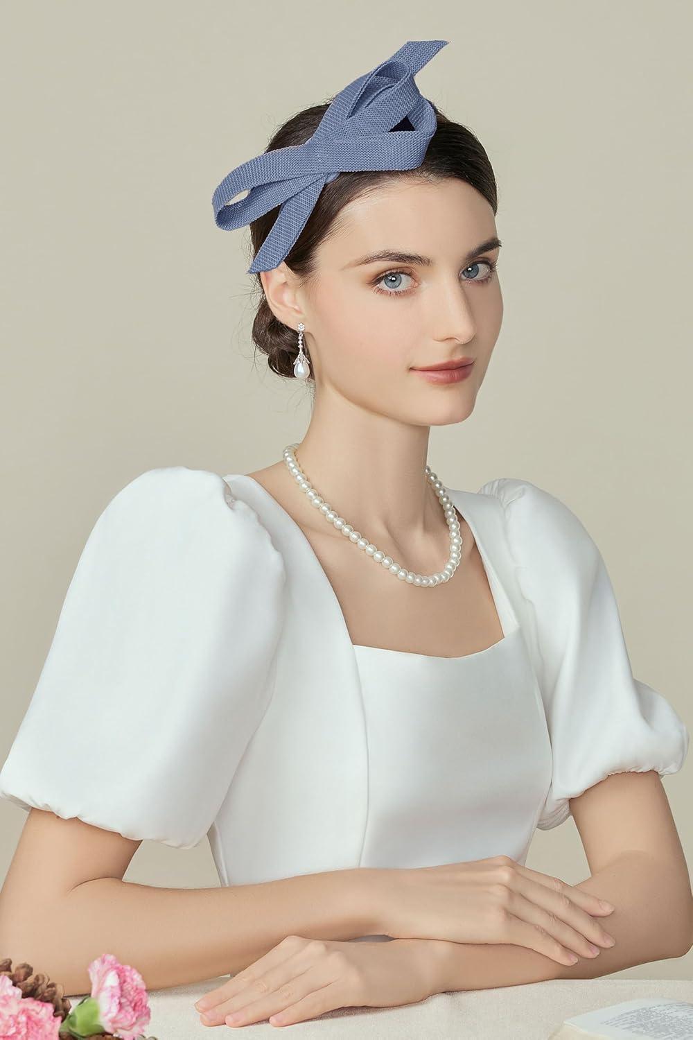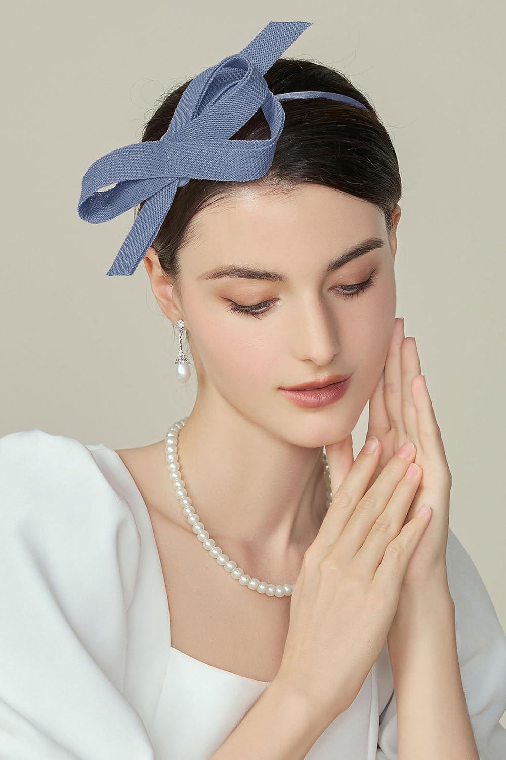 imageBABEYOND Fascinator Headband for Women  Tea Party Kentucky Bow Headband Derby Cocktail Wedding Ribbon Hair Clip for DailyLight Blue