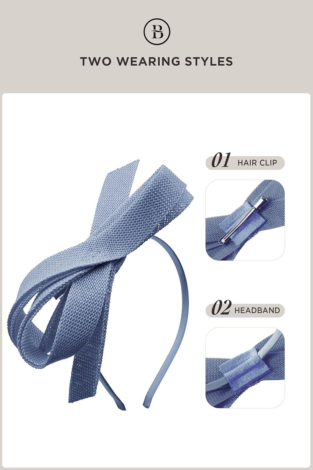 BABEYOND Fascinator Headband for Women – Tea Party Kentucky Bow Headband Derby Cocktail Wedding Ribbon Hair Clip for Daily(Light Blue)