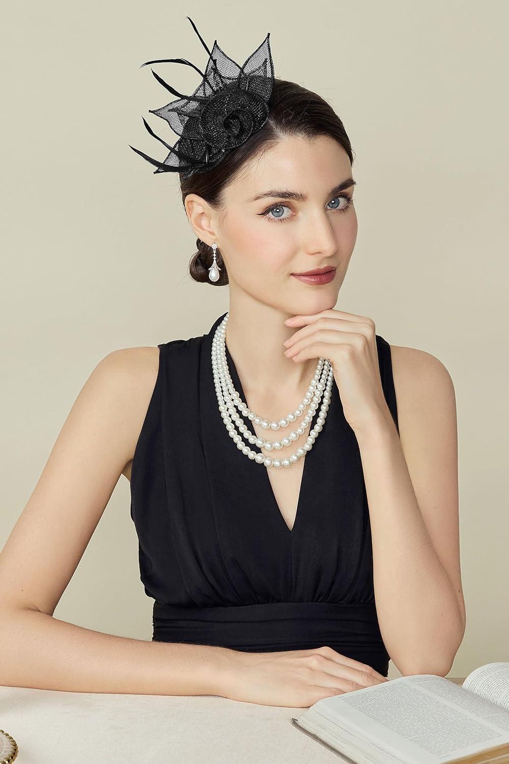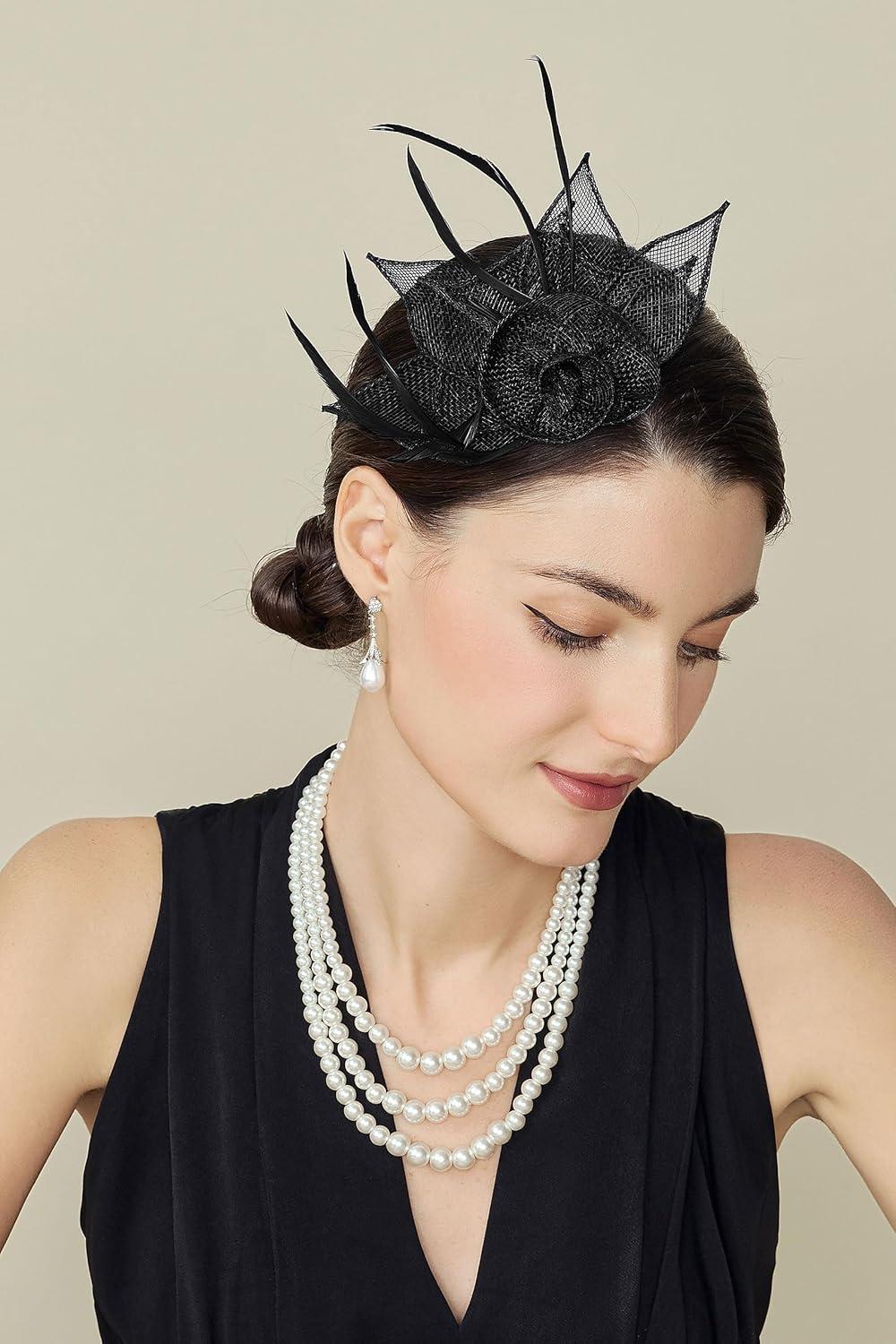 BABEYOND Fascinators Hats for Women – Tea Party Hat Kentucky Fascinator Derby Feather Flower Hair Clip Bridal Wedding(Black)