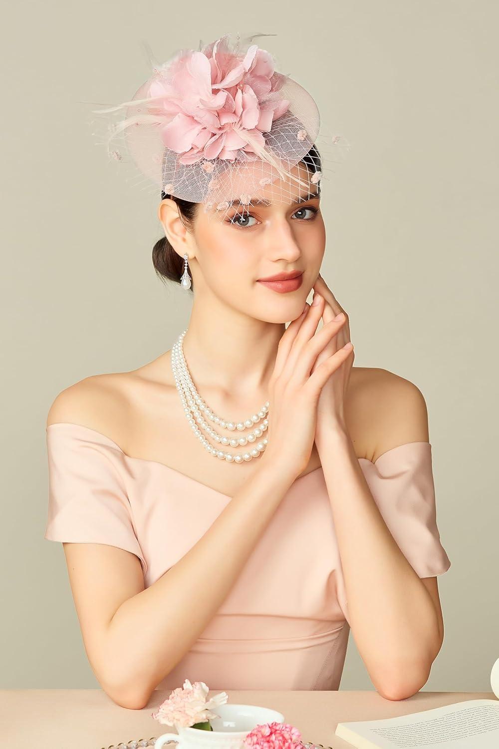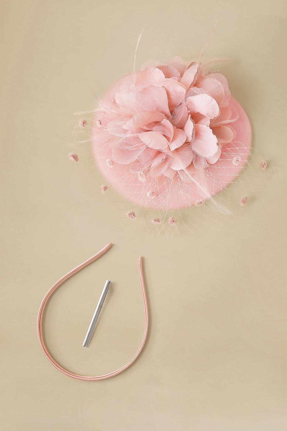 BABEYOND Fascinators Hats for Women - Tea Party Kentucky Fascinator Derby Church Hat Wedding Cocktail Headband with Hair Clip(Nude Pink)