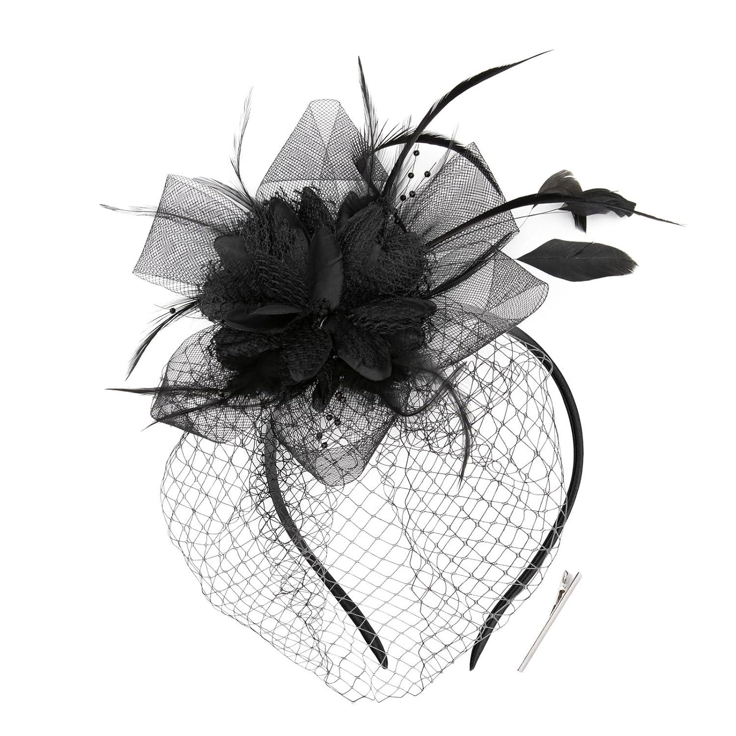 BABEYOND Fascinators Hats for Women – Tea Party Kentucky Fascinator Derby Hat Feathers Flower Mesh Knot Veil Headband