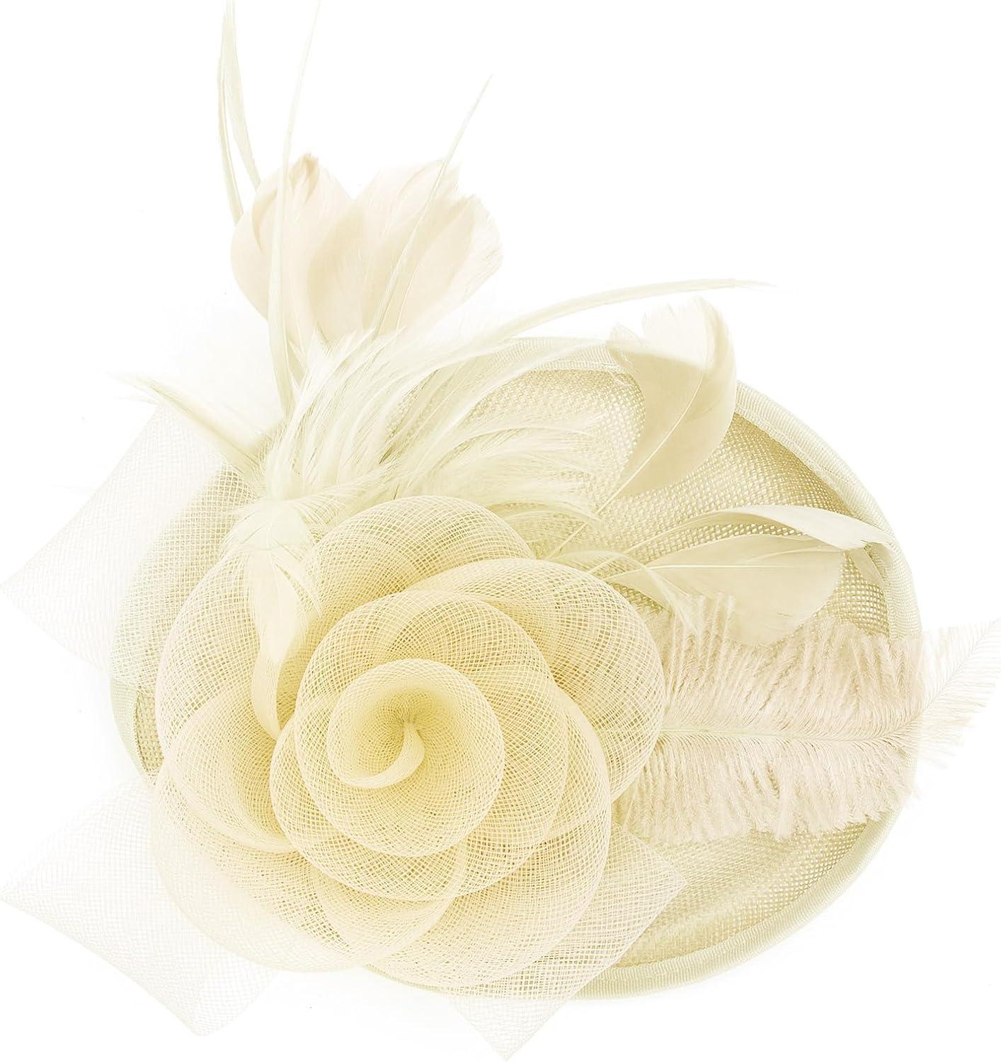 BABEYOND Fascinators Hats for Women – Tea Party Kentucky Fascinator Derby Pillbox Hat Mesh Feathers Headband with Hair Clip(Beige)