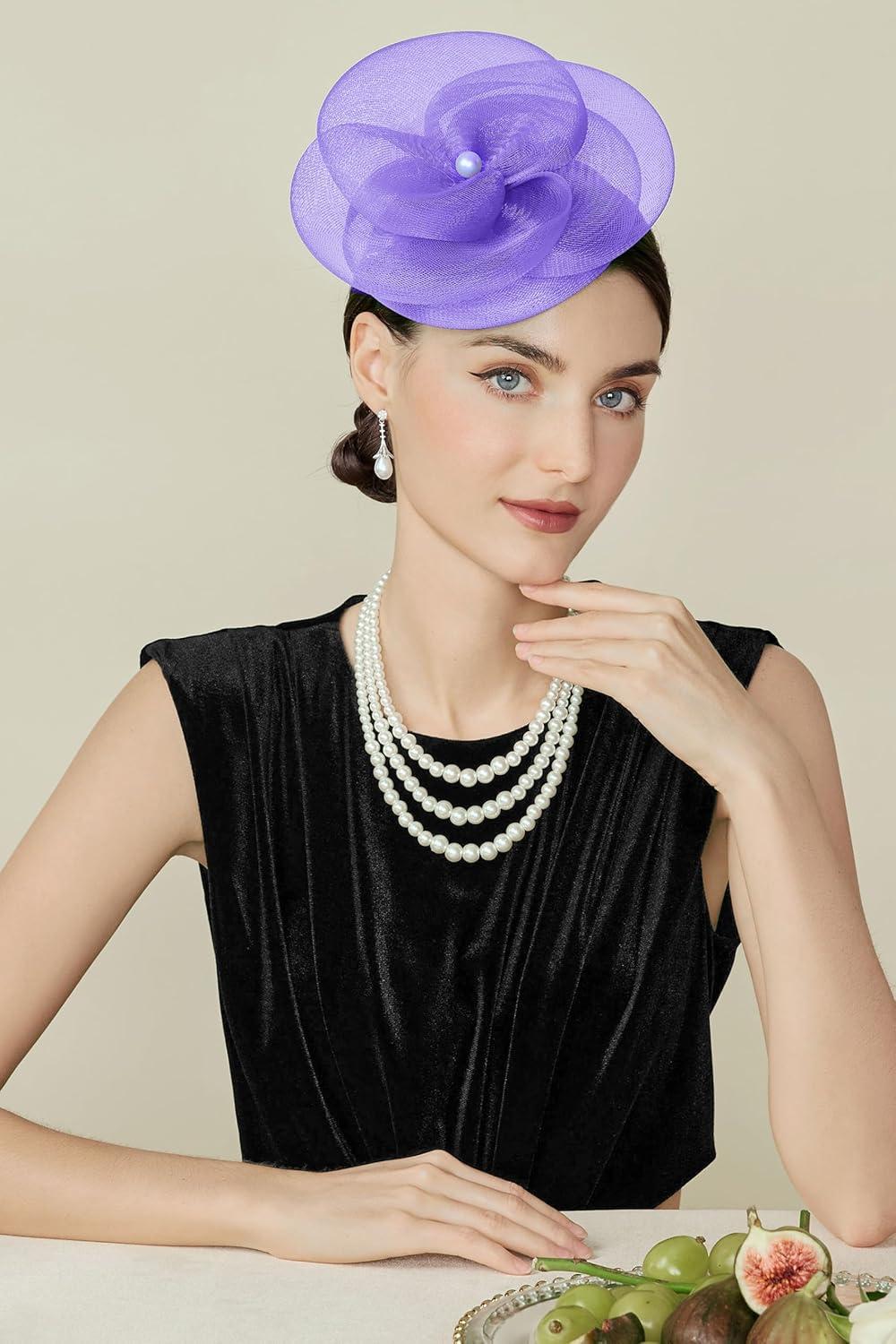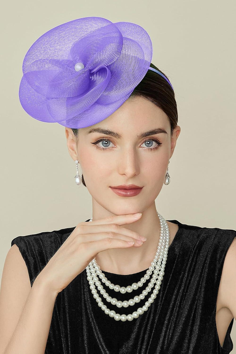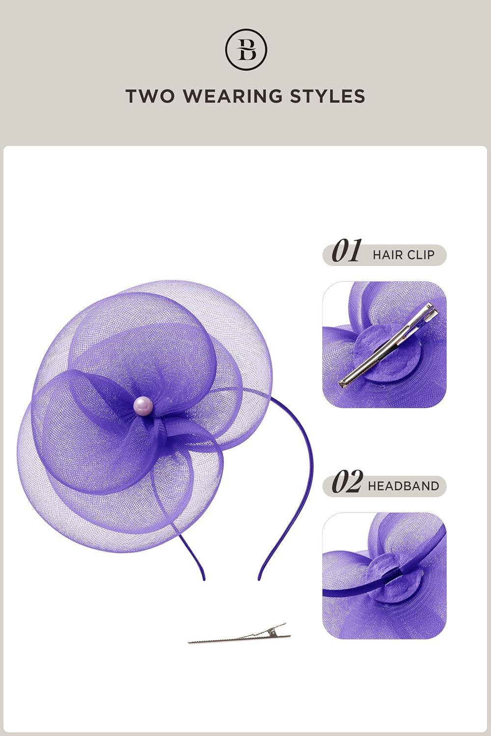 BABEYOND Fascinators Hats for Women - Tea Party Kentucky Hat Derby Headband Elegant Wedding Party Bride Hat with Hair Clip(Dark Purple)