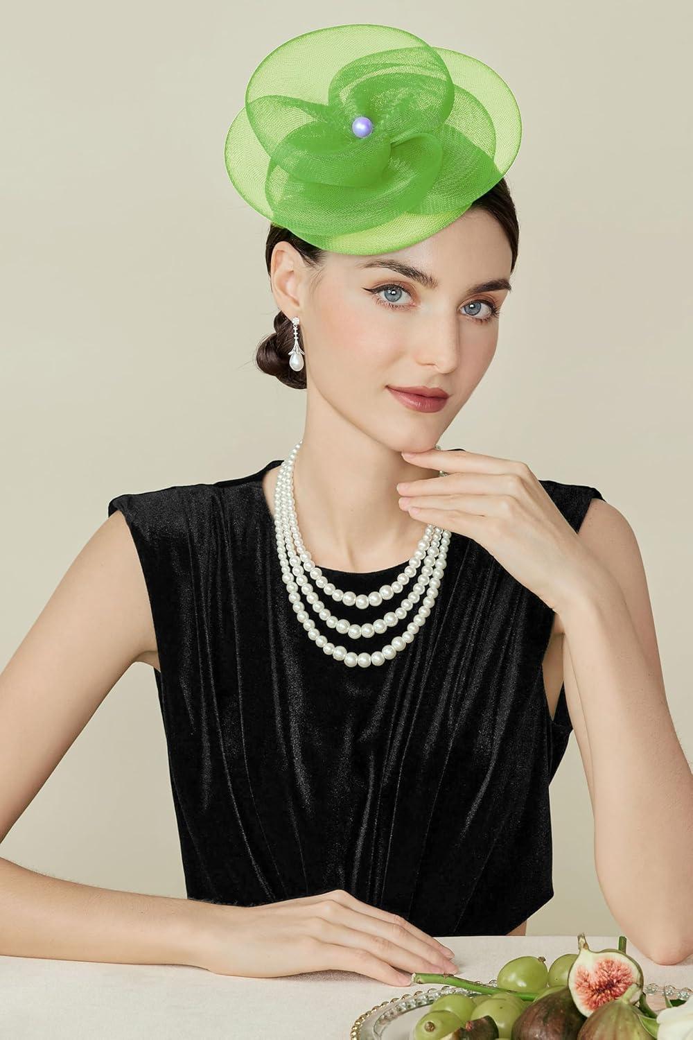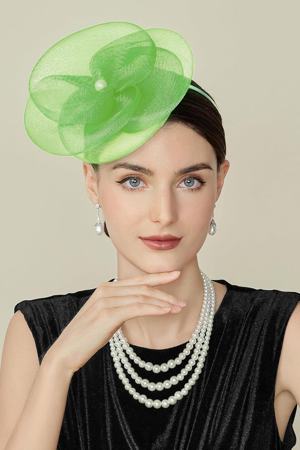 imageBABEYOND Fascinators Hats for Women  Tea Party Kentucky Hat Derby Headband Elegant Wedding Party Bride Hat with Hair ClipLight Green