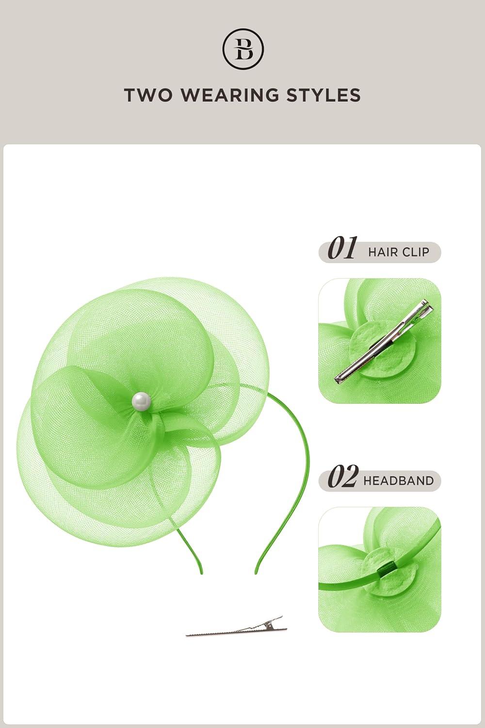 BABEYOND Fascinators Hats for Women - Tea Party Kentucky Hat Derby Headband Elegant Wedding Party Bride Hat with Hair Clip(Light Green)